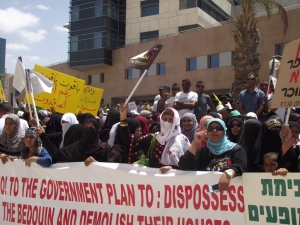 جاء في بيان صادر عن المجلس الإقليمي للقرى غير المعترف..جناح عطيه الاعسم.. مايلي" في إطار التصدي لمخطط برافر – بيغن ، شارك ما يزيد عن عشرة آلاف متظاهر في المظاهرة الكبرى التي انطلقت صباح اليوم الخميس من أمام السوق البلدي بمدينة بئر السبع متوجهة بمسيرة جبارة أغلقت الشوارع متوجهة إلى المكاتب الحكومية الإسرائيلية في بئر السبع وهي تردّد هتافات مناهضة للمخططات الحكومية الرامية إلى إقتلاع الأهل في النقب ومصادرة أراضيهم، تقدّم المظاهرة قيادة الوسط العربي في البلاد، وقد شارك في هذه المظاهرة كافة أطياف وشرائح العرب في النقب ، بهذه المناسبه يثمن المجلس الإقليمي دور الجماهير العربية في البلاد عامة والنقب خاصة في تضامنها ومساندتها للقرى غير المعترف بها ويوجه رسالة شكر إلى كل من ساهم في إنجاح هذه المظاهرة والتي تعتبر الإنطلاقة الأولى نحو تحقيق الهدف وإسقاط مخطط برافر – بيغن، وتحقيق كافة الحقوق في الإعتراف بالقرى وتوفير الخدمات الأساسية فيها.من جانبه تحدّث رئيس المجلس الإقليمي عطية الأعسم حول المظاهرة بالقول" كلمة شكر نوجهها للقيادات العربية التي شاركت في المظاهرة الجبارة، والى الجماهير العربية في النقب التي هبت للمشاركة في المظاهرة وبعثت رسالة قوية واضحة إلى متخذي القرار أن النقب بصمود أهله أقوى من مخططات الإقتلاع والترحيل وعلى رأسها مخطط برافر – بيغن المشؤوم، وهذه الجماهير العربية التي شاركت تؤكد على أن النقب بقيادته وشعبه يرفض مخطط برافر – بيغن جملة وتفصيلًا، وتؤكّد على حق الجماهير في القرى غير المعترف بها في العيش الكريم على أرضهم، وسنواصل مناهضة هذه القوانين العنصرية حتى إسقاطها"..يذكر ان المجلس الاقليمي منقسم الى جناحين احدهما يتبع عطيه الاعسم والاخر ابراهيم الوقيلي والاثنان يخرجان بيانات وتصريحات باسم المجلس الاقليمي للقرى الغير معترف بها في النقب.. وجب التنويه!!