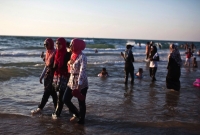 مرأة فلسطينية "مُجلببة ومُحجّبة" تتخلّد في صورة تحمل طفلًا عابسًا (مستغربًا؟) وإلى جانبها شابة اسرائيلية بمايوه بحري زهريّ "كزهر اللّوز أو أبعد". البلاغة في الإيجاز والصّورة بألف كلمة. لكن الصّورة لا تختزل إلّا العناوين، أما القصة الكاملة ففي صور أخرى: بحرٌ يغصُّ بالمئات من الفلسطينيين في ظلّ أبنية يافا المُمكيجة بلُبس "عصرية". قبل يومين أرتني الرّفيقة رشا صورًا لكورنيش عكّا وقد دهمه الآلاف من فلسطينيي الجليل المُدلّل بالشّواطئ والبحيرة الغادرة. منظر مشابه بالتّفاصيل: بحر ومئات من الفلسطينيين يؤمّونه وكأنّه عاد من هجرته القسريّة. لكنّ التّفاصيل تختلف أيضًا: يافا قُتلت وعكّا تُجهّز للقتل، الوافدون الجليليّون إلى عكّا لا يحتاجون التّصاريح (كما في السّابق وربّما في المستقبل) لوفود عكّا. هذه التّفاصيل غير المملة تجعل المرء ينحاز فورًا إلى فورة الفلسطينيين في بحر يافا. الفرح الطفوليّ في تقافز خمس نساء عند الشاطئ وكأنهنّ لم يقضين فترة بلوغهنّ حتى الآن وراء الحواجز والجدران. يحبّون تسميته هنا "إسكيبيزم". الهروب. ولمَ لا؟ قليلٌ من الوهم والهروب لم يقتل أحدًا يومًا، وكيف يستطيع "المُدلّل" أن يفهم حرقة الماء المالح لأوّل مرّة؟ هل تتذكّرونها؟