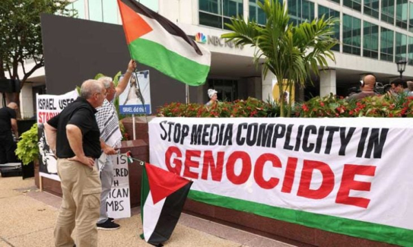 واشنطن.. مظاهرة للتنديد بانحياز الإعلام الأمريكي لصالح إسرائيل!!...