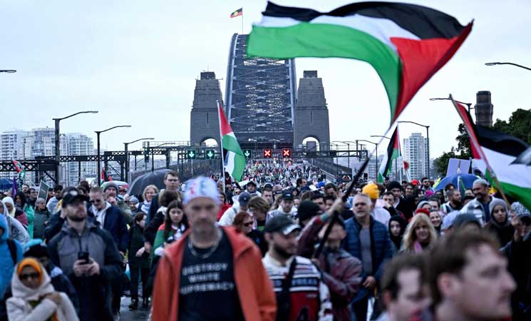 مسيرة من أجل الإنسانية.. آلاف المتظاهرين المؤيدين للفلسطينيين ينظمون مسيرات عبر جسر هاربور في سيدني- (صور)!!