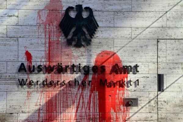 برلين..المانيا :توقيف خمسة أشخاص بعد سكب طلاء على واجهة مقر وزارة الخا...