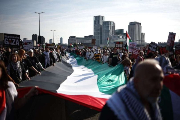 لندن..بريطانيا :مئات الآلاف يملؤون شوارع لندن تضامنا مع فلسطين بعد اتف...