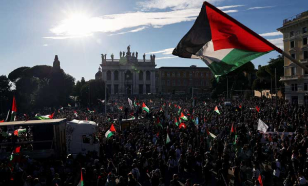 روما..ايطاليا :مئات الآلاف يتظاهرون في مدن أوروبية دعما للفلسطينيين!!...