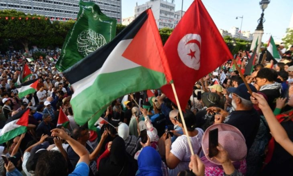 تونس..تونس :ناشطون تونسيون يستنكرون فض الشرطة لاعتصامهم أمام السفارة ا...