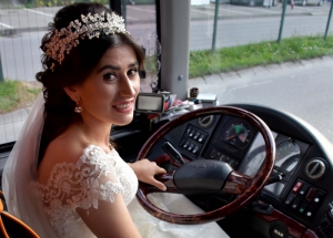 عروس تركية تقود حافلة المدعوين بفستان الزفاف !!...