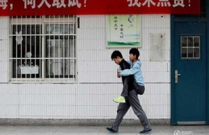 طالب صيني يحمل صديقه المعاق ثلاث سنوات إلى المدرسة!!...