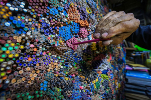 عراقي يجمع أكثر من مليون قلم في دكان صغير!!...