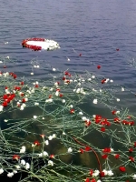 على إحدى ألسن ميناء غزة تجمعوا وبعد دقائق معدودة رموا تلك الورود على سطح البحر، وما أن اقتربت من المياه وعانقت سطحه حتى أطلق كل منهم ترحمه على شهداء أسطول الحرية، والبعض منهم لوح بيده الصغيرة كمن يرثى خليله.
