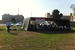 بمبادرة من لجنة التوجيه العليا لعرب النقب المنبثقة عن لجنة المتابعة لشؤون عرب الداخل،تم يوم أمس الثلاثاء نصب خيمة احتجاج قبالة ما يسمى "سلطة تنظيم الاستيطان البدوي في النقب" في بئر السبع.هذا وكانت لجنة التوجيه قد التأمت في الخيمة، وافتتحت جلستها بالتأكيد على قرارات اجتماع لجنة المتابعة في مدينة رهط يوم الأحد الماضي، كما أكدت التزامها بقرارات اللجنة ومن ضمنها القرار الذي أكد على أن لجنة التوجيه العليا لعرب النقب هي العنوان الوحيد لمناهضة مخطط برافر- غولدبيرغ، وإفشاله.كما وضعت لجنة التوجيه خلال جلستها برنامجا لتفعيل خيمة الاحتجاج وتحويلها الى منبر ثقافي للتوعية حول مخاطر المخططات السلطوية والقرارات الحكومية التي تهدد الوجود العربي في النقب، من خلال إقامة طاقم لإدارة الخيمة يقوم بتركيزه الناشط علي أبو صبيح. وأقرت اللجنة حملة التوعية والتعبئة من خلال المساجد، وتحويل الأفراح والمناسبات الاجتماعية إلى نواة للتعبئة ضد المخطط الخطير، والتطرق إليه في المدارس الثانوية، وإقامة أربعة اجتماعات جماهيرية على كل من مفترقات الطرق التالية: مفترق عرعرة النقب، مفترق السقاطي، الفرعة، وفي مدينة رهط.وتقرر تتويج الوقفات بإضراب عام في النقب يوم الخميس الموافق 6/10/2011، ويشمل التربية والتعليم، وتنظيم مظاهرة مركزية تحت شعار "العدل والاعتراف" في نفس يوم الإضراب، أمام ما يسمى "سلطة تنظيم الاستيطان البدوي في النقب" في مدينة بئر السبع الساعة الحادية عشرة قبل الظهر.كما تمت إقامة طواقم للتواصل مع السلطات المحلية العربية واليهودية في النقب، وتنظيم وتفعيل المحامين العرب لمناصرة قضيتهم وأخذ دورهم، وتقرر عقد اجتماع للمحامين العرب في الخيمة اليوم الأربعاء عند الساعة الخامسة.يضاف إلى ذلك تفعيل لجان أولياء الأمور، والتواصل مع الطلاب في الجامعات وإشراكهم في النضال، والتواصل مع مؤسسات المجتمع المدني المحلية والدولية المناهضة للعنصرية، والتوجه للجنة الدولية للحقوق الاقتصادية الاجتماعية، ودعوة سفراء الدول الأجنبية لإطلاعهم على واقع العرب في النقب وخطورة مخطط برافر- غولدبيرغ.كما أوصت لجنة التوجيه العليا لعرب النقب بضرورة إقامة صندوق "الصمود" لتعزيز صمود أهل النقب في وجه التحديات المصيرية والخطيرة القادمة متمثلة بالمخططات الخطيرة، وقرارات حكومة نتنياهو –ليبرمان التي تستهدفنا شعبا وأرضا، حاضرا ومستقبلا، إلى هنا قرارات لجنة التوجيه.[ للمزيد حول مخطط " برافر" وضرورة المشاركه في الاحتجاجات انظر ايضا قضيه ورأي..مهماز الديار.. في ديار النقب.اضغط على صورة الحصان..جهة اليسار]!!