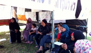استقطبت خيمة الصمود في بئر السبع، عدة فعاليات نسوية منذ صباح يوم امس الأربعاء قامت بها جمعيات نسائية من النقب، في إطار التجنيد والحشد الجماهيري، لإنجاح المظاهرة والإضراب في 6 أكتوبر.وقد شاركت في الفعاليات كل من الجمعيات التالية: جمعية نساء اللقية، جمعية سدرة، جمعية البيت الآمن، مجموعة القيادة والحقوق، جمعية أميرات الصحراء، جمعية النهوض بثقافة المرأة، ومنتدى اتحاد الجمعيات النسائية "معا",حيث قامت كل جمعية على ادارة اعمال وفعاليات الخيمة لمدة ساعتين، واستمع الحضور لمحاضرة حول مخطط برافر- ليبرمن، واستمع جمهور من النساء إلى استراتجيات النضال وتحشيد الجماهير ومن بينهم الجانب النسوي، لمظاهرة وإضراب 6 أكتوبر.الخميس القادم. وفي نهاية اليوم تم عقد جلسة لجميع الجمعيات المشاركة تم من خلالها بناء خطة للتحشيد والتوعية الميدانية في القرى، ومدينة رهط، وتمخض عن الجلسة بناء 4 طواقم توعية ميدانية حيث يتولى كل طاقم منطقة جغرافية معينة، ومنها: شارع بئر السبع ديمونا، رهط اللقية العراقيب، حورة كسيفه دريجات والقرى غير المعترف بها، وادي النعم وشقيب السلام وبير هداج.وعلم أن الطواقم النسوية ستبدأ عملها اعتبارا من صباح اليوم الخميس، وتجدر الإشارة إلى أن تقسيم الطواقم جاء على غرار طواقم ذكورية من المقرر أنها بدأت عملها بالتجوال في المناطق المختلفة لتجنيد الجماهير لإنجاح الإضراب، والمظاهرة بتاريخ 6 اكتوبر، والتي ستنظم في ساحة خيمة الصمود في بئر السبع الساعة الحادية عشرة!!