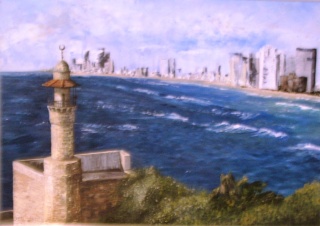 القسم الثالث: وهو مكون من لوحتين فقط، لوحة تمثل مدينة البتراء الأثرية في الأردن، برز فيها عمق التاريخ وجمالية اللون، وخرجت فيها الفنانة عن المألوف برسم مشهد الخزنة، إلى مشهد لنحت في الصخر وبروز التلال جرداء في المشهد، مع الأفق والسماء من بين التلال والخيالة يتجهون في الوادي، وكأنها تقول: هنا التاريخ وفي الأفق المستقبل، بينما اللوحة الثانية كانت لمدينة يافا الفلسطينية المحتلة، وقد ظهرت مئذنة مسجد حسن بك التاريخي في زاوية الصورة على شاطئ البحر محاطة بالأشجار الخضراء، وفي مواجهة التاريخ الذي مثله المسجد، ظهرت (تل الربيع) والتي أسماها الاحتلال (تل أبيب)، وليست أكثر من أبنية شاهقة وحديثة، ولكنها بدون أية روح وبدون أية أشجار، وكأن باللوحة تهمس للموج الغاضب: التزوير لا يمكن أن يحجب الحقيقة أبداً.