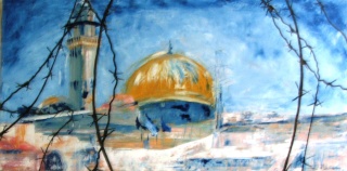 وأسلوب الرسم بوساطة تقسيم اللوحة إلى قسمين منفصلين، يمثلان لوحة واحدة حين وضعهما بجوار بعضهما البعض، لفت نظري باستخدامه ثلاث مرات، في لوحة لمسجد الصخرة المشرفة، وفي مشهد بانوراما للقدس، وفي مشهد لجدار من جدران المدينة المقدسة، فهل كانت المسألة أسلوباً فنياً مجرداً، أم كانت أسلوباً يطرح فكرة تقسيم القدس؟