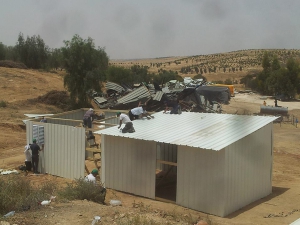 في ظل الملاحقة المستمرة وارهاب الدوله المنظم الذي يمارس ضد الوجود العربي النقباوي قامت مايسمى بوزارة الداخلية الإسرائيلية يوم أمس، الأحد، بإلصاق أوامر هدم على البيوت التي تمت إعادة بنائها ضمن مشروع إعمار قرية عتير.وتوحي أوامر الهدم بخطر هدم البيوت مجددا، وإلحاق الأذى والظلم المجحف بحق سكان القرية من عائلة أبو القيعان والذين وجدوا انفسهم بدون مأوى بعد قيام السلطات الإسرائيلية مؤخرا بهدم ثمانية عشر بيتا في القرية.ودعا الشيخ أسامة العقبي الأهالي إلى التمسك والصمود في قراهم، وقال: "نحن أمام عنجهية متواصلة تهدف إلى اقتلاع أهلنا في النقب، وليس لدينا خيار سوى البناء والبقاء في قرانا وأرضنا وبيوتنا".وأضاف: "أوامر الهدم لن تثني عزم أهلنا من مواصلة الدفاع عن حقهم بالوجود والصمود على أرضهم وفي قراهم".تجدرالإشارة إلى أنه في أعقاب تنفيذ عملية الهدم في عتير أم الحيران، باشر الأهالي في النقب إلى جانب متطوعين بإعادة بناء البيوت التي تم هدمها. من الجدير بالذكر ان الدوله الاسرائيليه تطارد عائلة ابوالقيعان منذ اكثر من ستون عام وتحديدا منذ النكبه عام 1948 حيث قامت بتشريدهم من مواطنهم وديارهم الاصليه اكثر من مره والان تريد اقتلاعهم وتشريدهم من عتير حتى يتسنى بناء مستوطنه يهوديه في المكان...إقتلاع البدو وزرع المستوطنين مكانهم!!