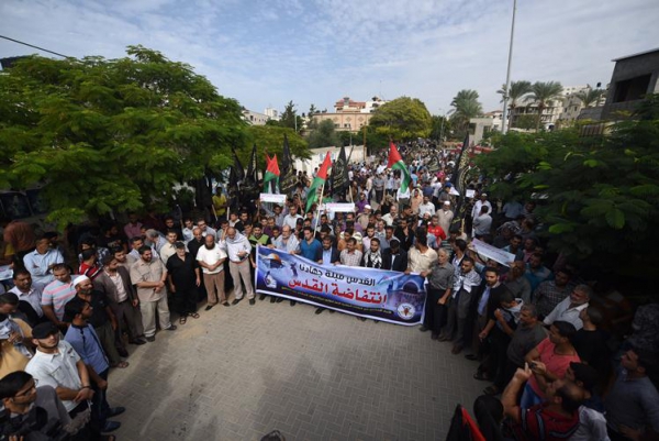 نظم الإتحاد الإسلامي في النقابات المهنية يوم امس السبت، مسيرة دعم لانتفاضة القدس انتهت بوقفةٍ أمام مقر الأمم المتحدة غرب مدينة غزة.وشارك في المسيرة حشدٌ غفير من الأطباء والمحامين والمحاسبين والصيادلة والممرضين وقطاعات أخرى تنشط في إطار الاتحاد النقابي، في رسالة استنكار للأدوار الدولية المشبوهة، التي تحاول وأد انتفاضة القدس.وتحدث النقابي الدكتور عبد المجيد العيلة في المشاركين قائلًا:" إن شعبنا ليؤكد بهذا الحضور أن المقاومة لا تحتاج إلى توازن استراتيجي، ولا إلى حسن النوايا مع عدو جُبّلَ على الغدر والخيانة والتنكر لكل المعاهدات.. بل إن بحاجة إلى إرادة حرة تأبى الظلم، وتثور في وجه الطغيان".وأشار إلى أن هذه هي ثقافة المقاومة التي علمنا إياها إسلامنا العظيم، وأحياها في نفوسنا ونفوس شعبنا الشهيد المعلم الدكتور فتحي الشقاقي، الذي وجّه لروحه الطاهرة ألف سلام في الذكرى العشرين لاستشهاده. وانتقد العيلة الصمت الدولي والمباركة الأمريكية لإجرام العدو الصهيوني وتدنيسه للمقدسات وانتهاكه للحرمات والقتل الممنهج خارج نطاق القانون على مرأى ومسمع من العالم كله، لافتًا إلى قرارات مجلس وزراء العدو المصغر والمعروف بـ"الكابينيت" بتوسيع عمليات القتل ضد الفلسطينيين سواء كانوا أطفالاً أو شيوخاً أو نساء، وعدم تسليم جثث الفلسطينيين ونسف المنازل والاعتقال للمجاهدين والتنكيل بالشهداء والجرحى وتركهم دون عناية، والتقسيم الزماني والمكاني للمسجد الأقصى.