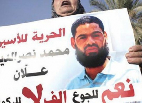 أفادت هيئة شؤون الأسرى والمحررين في تصريح صحفي ورد وطن للأنباء أن الأسير محمد علان الذي إستفاق من غيبوبته هدد بوقف علاجه بالوريد إعتبارا من اليوم الأربعاء اذ لم يتم الإفراج عنه وإنهاء إعتقاله الإداري التعسفي، علما ان غدا هو اليوم الذي اجلت اليه المحكمة العليا الإسرائيلية قرارها بخصوص بطلب من هيئة الأسرى للإفراج الفوري عنه.وقال الأسير علان الذي تلقى علاج بالوريد خلال الغيبوبة التي دخل فيها يوم الجمعة الماضي، إنه مصر على الإستمرار في إضرابه، وسيرفض أي علاج إذا بقيت حكومة إسرائيل تماطل في الإفراج عنه. وخلال اجتماع مع طبيب الصليب الاحمر الدولي أكد رئيس هيئة شؤون الأسرى والمحررين عيسى قراقع، أن الأسير محمد علان قد استفاق جزئيا من الغيبوبة التي دخل بها منذ الجمعه الماضية، وأن حالته الصحية لا زالت تحت الخطر الشديد ولا زال مهددا بمضاعفات صحية خطيرة للغاية، ومعرضا للموت الفجائي في أية لحظة. وقال قراقع أن الأسير علان، قد أصيب بالتهابات في الرئتين وارتفاع دائم بالحرارة وفقدان الرؤية خلال إضرابه المتواصل منذ 64 يوما على التوالي، ويخشى إصابته بنزيف دماغي أو التهاب رئوي حاد". وجاءت أقوال قراقع تلك بعد جلسته المطولة مع طبيب الصليب الأحمر رائد أبو ربيع، في مقر الصليب الأحمر برام الله، والذي يتابع عن كثب الوضع الصحي للأسير علان، موضحا أن اللجنة الدولية للصليب الأحمر الدولي ونقابة الأطباء في إسرائيل منعت أي شكل من الإطعام القسري للأسير علان خلال الغيبوبة وقبلها، وأن موقف الصليب الأحمر واضح في ممانعته المطلقة لأي إطعام قسري أو علاج بالقوة للأسير محمد".وأوضح قراقع، أن القانون الدولي يقضي بالإفراج الفوري عن أي أسير مضرب عن الطعام يدخل في حالة غيبوبة بسبب الإضراب عن الطعام، مستهجنا من تأجيل العليا الإسرائيلية تأجيل النظر في دعوى الإفراج العاجل عنه، رغم تردي حالته الصحية بشكل خطير".واتهم قراقع حكومة اسرائيل بالسعي لقتل علان وتركه مضربا حتى الموت، لافتا الى أن علان استفاق ظهر اليوم من غيبوبته ولا زال مواصلا إضرابه حتى الحرية".وكانمدير الوحدة القانونية في نادي الأسير المحامي جواد بولس، قد اكد أن الأسير محمد علان المضرب عن الطعام منذ أكثر من شهرين قد استيقظ وأعلن فوراً أنه ماضٍ في إضرابه حتى ينال حريته، على الرغم من أن الأطباء أكدوا أنه ما زال مصنفاً ضمن حالة الخطر، واحتمالية الوفاة المفاجئة لازالت واردة.وأضاف بولس الذي أنهى زيارة لعلان قبل قليل في مستشفى "برزلاي" في عسقلان أن الأسير تحدث بكامل وعيه وأكد أنه مستمر في إضرابه عن الطعام، وأنه يعترض على إعطائه أي دواء أو مواد من خلال الوريد وطلب بإيقافها، ويضيف بولس أن علان وافق بعد أن جرى شرح تفصيلي عن وضعه بأخذ بعض المدعمات مدة 24 ساعة ينتظر فيها أن يكون خلالها هناك حلاً لقضيته!!