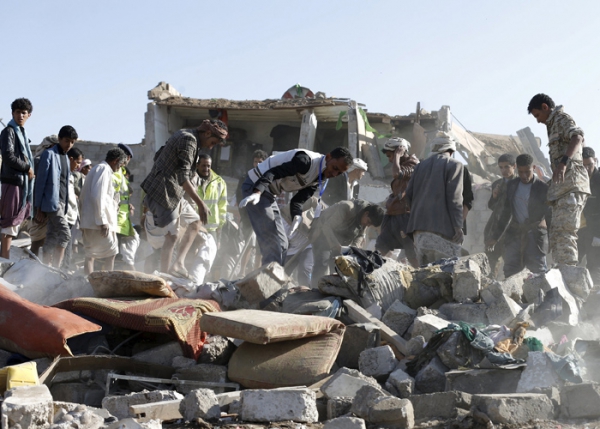 جدد طيران التحالف العربي بقيادة السعودية، في وقت مبكّر من الأحد، غاراته الجوية على مواقع مختلفة يسيطر عليها الحوثيون وقوات صالح بالعاصمة صنعاء.وقال سكان محليون إن عدة غارات جوية شنها طيران التحالف استهدفت معسكرات الدفاع الجوي، الجميمة وخشم البكرة، حيث سمعت دوي انفجارات عنيفة وشوهدت أعمدة الدخان ترتفع بكثافة.وما زال طيران التحالف يحلق على اجواء العاصمة بشكل كثيف وسط إطلاق المضادات الارضيّة من قبل الحوثيين من مواقع مختلفة.وتأتي تلك الغارات قبل ساعات من وصول المبعوث الدولي إلى اليمن إسماعيل ولد الشيخ حسبما صرح قيادي حوثي للالتقاء بممثلي جماعة أنصارالله الحوثية للبحث في القضايا المتعلقة بالأوضاع التي تمر بها اليمن.ودعت اللجنة الثورية التابعة للحوثيين في بيان لها للاحتشاد عصر الأحد بشارع المطار، احتجاجاً على ما أسموه "تقاعس الامم المتحدة" إزاء الوضع الإنساني في اليمن وتزامناً مع وصول المبعوث الدولي.وكان التحالف العربي قد قصف السبت مصنعا للصواريخ والذخائر قرب صعدة، مما ادى الى مقتل 23 شخصا.وقالت مصادر حينها ان المصنع الواقع في ساقين القريبة من صعدة، معقل المتمردين الحوثيين الشيعة في شمال اليمن، استهدفته الغارة الجوية ليل الجمعة السبت.وفي العاصمة صنعاء، شنت طائرات التحالف فجر السبت اربع غارات على مخزن للاسلحة مما ادى الى انفجارات، وخمس غارات على مقر قيادة الدفاع الجوي بحسب شهود.واستهدفت غارة جوية اخرى للتحالف في صنعاء منزل الرئيس عبدربه منصور هادي، كما ذكرت مصادر قريبة من المتمردين، مما ادى الى سقوط قتلى بين المتمردين الموجودين فيه. ويسيطر الحوثيون على منزل الرئيس اليمني منذ احتلوا العاصمة في مارس.وفي جنوب اليمن، لقي 23 متمردا مصرعهم الجمعة في عدن خلال معارك مع القوات الموالية للحكومة وفي غارات جوية للتحالف، فيما قتل اثنان آخران بانفجار عبوة قرب عتق كبرى مدن محافظة شبوة، كما ذكرت مصادر عسكرية.وفي عدن يعتبر الوضع كارثيا، فالناس يواجهون نقصا في المواد الغذائية، وظهرت امراض مثل الملاريا والتيفوئيد وحمى الضنك، بسبب تدهور الظروف الصحية ولا يمكن معالجتها بسبب نقص الادوية.وقد سيطر الحوثيون المدعومون من الوحدات العسكرية التي ما زالت موالية للرئيس السابق علي عبدالله صالح، على مناطق شاسعة من اليمن منذ يوليو 2014.وفي 26 مارس، تولت السعودية قيادةتحالف عربي لمنع المتمردين من السيطرة على كل انحاء البلاد، علما انهم كانوا وصلوا الى عدن، ثاني مدن البلاد، مما حمل الرئيس على اللجوء الى الرياض. ومنذ نهاية مارس قتل 858 مدنيا ومقاتلا مواليا للحكومة واصيب 6879 بجروح في عدن، كما اعلن مدير مكتب الصحة والسكان الخضر لصور!!