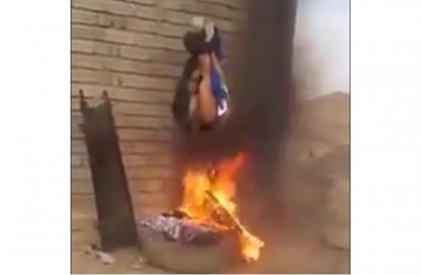 تداول ناشطون على مواقع التواصل الاجتماعي مقطع فيديو يظهر قيام عناصر مليشيا الشيعية بحرق شاب سني في منطقة تابعة لمحافظة الأنبار.وأوضحت مصادر عراقية في "تويتر" أن الفيديو تم العثور عليه في هاتف أحد مقاتلي كتيبة "الإمام علي" الشيعية، وهو الاسم الذي يظهر على الزي العسكري للعناصر الذين قاموا بتعذيب الشاب السني بطريق بشعة.كما بين ناشطون أن الشاب السني تم قتله وتعذيبه بـ"الشوي" في النار بمنطقة ذراع دجلة شمال شرق الگرمة التابعة للأنبار.ويظهر في الفيديو عناصر كتيبة "الإمام علي" أثناء تبادلهم الضحكات، دون اكتراثهم بالشاب الذي يتعرض للهيب النيران.وليست هذه المرة الأولى التي يقدم فيها عناصر من المليشيات الشيعية على إحراق شاب سني، إلا أن هذه الفيديوهات لا تلق تفاعلا إعلاميا أو دوليا معها!!