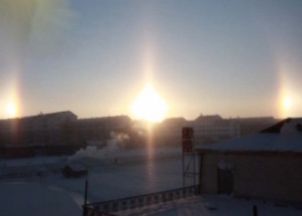 أولان باتور (منغوليا)- في ظاهرة طبيعية نادرة، أنارت سماء دولة منغوليا الأحد الماضي 3 شموس مرة واحدة، وتمكن البعض من تصويرها ونشرها على الإنترنت. ويطلق على الظاهرة العلمية النادرة اسم “الشمس الكاذبة” بالعربية، أو “بارهليون” باللاتينية، وهي عبارة عن شمس حقيقية وأخرى زائفة.ويطلق البعض على هذه الظاهرة أيضا اسم “الشمس الكلب”، وذلك لأن الشمس الزائفة تتبع الشمس الحقيقية مثلما يتبع الكلب صاحبه. وتمثل “الشمس الكاذبة” ظاهرة بصرية ذات علاقة بالغلاف الجوي، وتحدث عندما تنعكس أشعة الشمس على البلورات الثلجية المحملة في السحاب.وينجم عن هذه الظاهرة شكل أشبه بالهالة، توجد شمس منعكسة على جانبيها. ولكي تحدث هذه الظاهرة، لا بد أن تصل درجة الحرارة إلى 30 درجة مئوية تحت الصفر، ويكون الجو محملا ببخار الماء والبلورات الثلجية. ووفقا لما تم تسجيله في منغوليا، فقد توسطت الشمس الحقيقية شمسين زائفتين، وكانت الشموس على ارتفاع منخفض!!