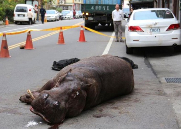 مياولي (تايوان) – قفز فرس نهر أثناء نقله بشاحنة في مقاطعة مياولي بجنوب تايوان الجمعة فكسرت ساقه وأسنانه حيث ترك في الشارع لساعات قبل أن يتم إنقاذه حسبما ذكرت وسائل الإعلام المحلية.وأضافت أن فرس النهر قفز من الشاحنة وهي تتحرك وصدم سيارة متوقفة قبل أن يسقط على الأرض.وأظهرت لقطات بثها تلفزيون “اف تي في” المحلي فرس النهر وعيناه تدمعان وهو مصاب وملقى في الشارع فيما تجمعت حشود حوله وظهرت الخدوش على السيارة المتوقفة التي ارتطم بها أثناء القفز.وبعد ساعات قلائل من سقوطه على الأرض تم رفع فرس النهر المصاب في شاحنة ونقله إلى بحيرة صغيرة حيث قالت قناة “اف تي في” إنه يتلقى العلاج الطبي.ويمكن أن يتعرض صاحب فرس النهر لغرامة تصل إلى 2400 دولار أميركي لمخالفته قوانين حماية الحيوان حسبما أشارت وسائل الإعلام المحلية نقلا عن السلطات التايوانية!!