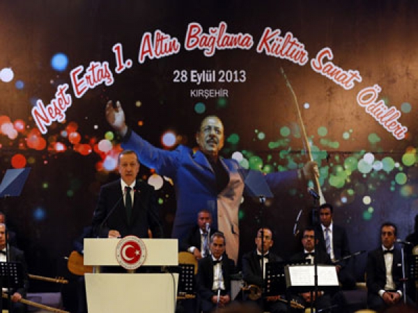 شارك رئيس الوزراء التركي “رجب طيب أردوغان” مجموعة من الفنانين الأتراك، في غناء أغنية “جبل القلب” للمطرب التركي الراحل “نشأت أرطاش”.جاء ذلك خلال مشاركة أردوغان في حفل افتتاح فندق “ماكيسوس ترمال”، ومراسم مهرجان توزيع جوائز “نشأت أرطاش” للثقافة والفنون، في ولاية “قرشهر” وسط تركيا، وذلك بمناسبة مرور عام على وفاته.ولفت أردوغان في كلمته، إلى أن الفنان أرطاش خسارة لا تعوض، مبيناً أنه عاش مع المعاناة والفقر منذ طفولته، وأن الكلمات لا يمكن أن تنصفه حقه.وكان أردوغان زار ضريح الفنان أرطاش برفقة عقيلته أمينة أردوغان، وشقيقتي الفقيد أرطاش، وذلك قبيل المشاركة في الحفل.من جانب آخر، قام أردوغان بقيادة أول سيارة من تركية الصنع تسير بالطاقة الكهربائية، من طراز “إتوكس″ في ساحة حديقة الفندق، فيما تلقى شرحاً حول السيارة من المسؤولين في الشركة المصنعة!!