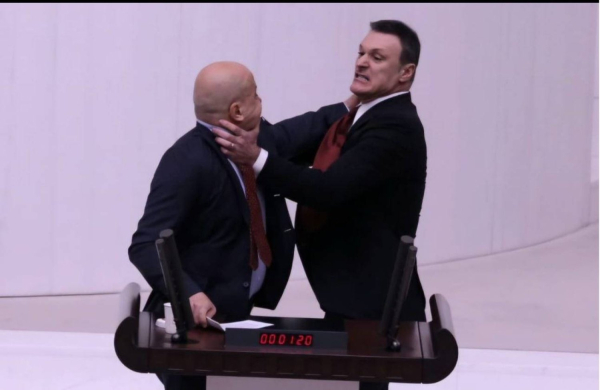 ذكرت وسائل إعلام تركية أن نائبين على الأقل أصيبا في مشاجرة عنيفة نشبت في البرلمان التركي اليوم (الجمعة) خلال جلسة حول نائب معارض مسجون، وفق «وكالة الصحافة الفرنسية».واندلع الشجار عندما قام النائب ألباي أوزالان عن حزب «العدالة والتنمية» الحاكم بتوجيه لكمة إلى النائب المعارض أحمد سيك، في حين كان الأخير ينتقد الحكومة بشأن النائب المعتقل جان أتالاي.وتدخل نواب آخرون، ما أدى إلى شجار عنيف بين عشرات النواب استمر قرابة نصف ساعة.وأصيب ما لا يقل عن نائبين معارضين بجروح طفيفة بعد أن تلقيا لكمات على أعينهما.وتلطخت الأرض بقطرات دم، وفق صور بثتها وسائل إعلام تركية.وجرى تعليق الجلسة البرلمانية التي كان من المقرر أن يدرس خلالها قرار المحكمة الدستورية بشأن استعادة ولاية جان أتالاي.وانتخب أتالاي في مايو (أيار) 2023 من زنزانته، وجرى تجريده من ولايته البرلمانية في يناير (كانون الثاني).حُكم على المحامي المنتخب تحت راية حزب «العمال التركي» (يسار) في أبريل (نيسان) 2022 بالسجن 18 عاماً بتهمة السعي مع رجل الأعمال عثمان كافالا -المحكوم عليه بالسجن مدى الحياة- للإطاحة بالحكومة عام 2013 من خلال مظاهرات غير مسبوقة.!!