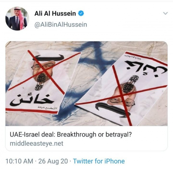 توتر شديد بين الأردن والامارات بسبب تغريدة للأمير علي بن الحسين عن الإ...