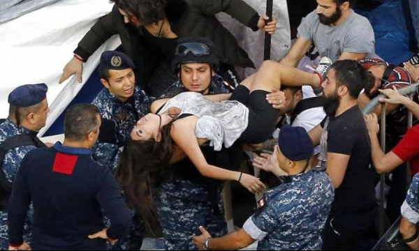 مناصرون لحزب الله و حركة أمل يهاجمون المتظاهرين في بيروت !!...