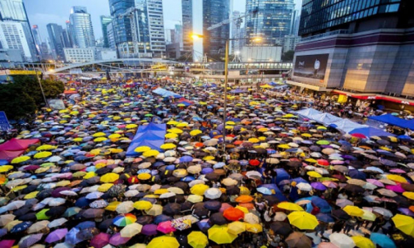حاجزٌ من المظلات بين الشرطة والمحتجين في هونغ كونغ!!...