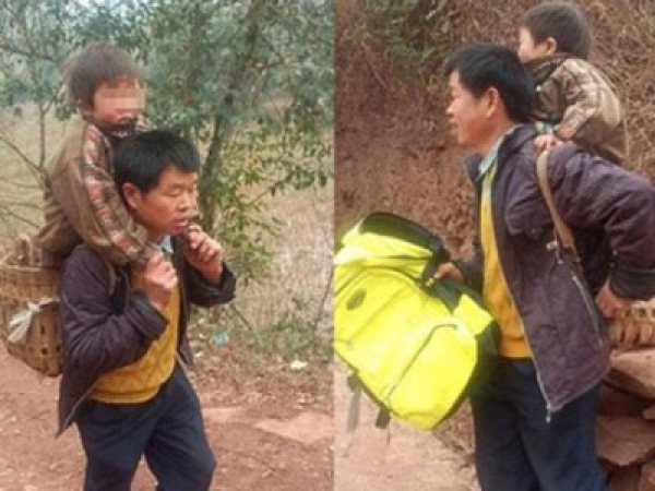 أب يحمل ابنه المعاق 18 ميلا سيرا كل يوم ليتعلم!!...