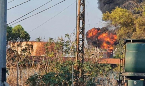 انفجار هائل في خزان وقود بجنوب لبنان!!...