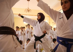 أم الخمسة أطفال تعلم الصغار الكاراتيه في فلسطين!!...