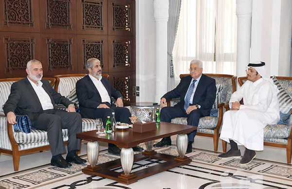 بعد تأكيد ونفي وبعد نحو اربع سنوات قطيعة عقد الليلة قبل الماضية في العاصمة القطرية الدوحة لقاء جمع الرئيس الفلسطيني محمود عباس وزعيم حركة حماس خالد مشعل ونائبه اسماعيل هنية وذلك لغرض تحقيق المصالحة الفلسطينية. توقعت مصادر فلسطينية مطلعة أن تستضيف العاصمة القطرية الدوحة، لقاءات مصالحة جديدة بين حركتي فتح وحماس، للاتفاق على تشكيل حكومة وحدة وطنية محل حكومة التوافق في أعقاب لقاء الدوحة الذي قالت الحركة إنها قدمت خلاله «رؤية متكاملة لتحقيق المصالحة».وقال مسؤول في حركة فتح من قطاع غزة إن هناك إشارات قوية على عقد لقاء قريب بين وفدين قياديين من الحركة وحماس، للتشاور حول تشكيل حكومة وحدة وطنية، في ضوء اللقاء الذي جمع الرئيس مع قيادة حركة حماس.وأشار إلى أن مخرجات لقاء الدوحة بين الرئيس عباس وقيادة حماس ستتضح بعد عودة الرئيس إلى الضفة الغربية، حيث سيعقد اجتماعا للجنة المركزية لحركة فتح، وسيضعهم في صورة التطورات وما جرى بحثه في لقائه مع قادة حماس بشكل مفصل. لكن المسؤول أكد أن لقاء الرئيس بقيادة حماس، لم يكن يتم لولا وجود تحسن طرأ على عملية المصالحة المنشودة. وأشار إلى أن ملف المصالحة جرى بحثه بشكل معمق خلال لقاءات الرئيس في جولته الخارجية في كل من تركيا وقطر، لما لهاتين الدولتين من علاقات قوية مع حماس. وجاء لقاء الرئيس عباس بقيادة حماس، بعد لقاءات عقدها محمد بركة رئيس لجنة المتابعة العليا للجماهير العربية في الأراضي المحتلة عام 1948، مع قيادة حماس في الدوحة، بعد دخول اللجنة على خط التوسط، وعقدها لقاءات في مدينة رام الله مع حركة فتح. وكانت لجنة المتابعة قد أعلنت عزمها المبادرة إلى إحياء المبادرات الهادفة لإتمام المصالحة بين فتح وحماس، وإلى إنهاء الانقسام الفلسطيني.يشار إلى أن اللقاء الذي جمع الرئيس بمشعل وهنية، جاء بعد فترة طويلة من الغياب. وكانت العاصمة القطرية الدوحة قد استضافت عدة لقاءات بين الطرفين، بهدف الاتفاق على تشكيل حكومة وحدة وطنية، غير أن خلاف الفريقين على برنامج الحكومة، وملف موظفي غزة الذين عينتهم حماس بعد سيطرتها على غزة، ودمجهم في المؤسسة الحكومية حال دون ذلك. ويعود آخر لقاء بين الطرفين إلى شهر يونيو/ حزيران الماضي، حيث انتهت اللقاءات بعد يومين من المباحثات دون نتائج، بسبب الخلاف على ملفي برنامج الحكومة ودمج موظفي حماس في غزة.إلى ذلك أشارت حماس في تصريح صحافي أن اللقاء جاء برعاية قطرية في منزل وزير خارجية دولة قطر الشيخ محمد بن عبد الرحمن آل ثاني، على غداء عمل. وأوضح التصريح أنه وبعد استعراض التحديات والمخاطر التي تحيط بالقضية والشعب الفلسطيني، جرى التداول في الأولويات الفلسطينية في هذه المرحلة، وخاصة تحقيق المصالحة الوطنية وإنهاء الانقسام. وأشار البيان الصادر عن حماس الى أن قيادة الحركة عرضت «رؤية متكاملة لتحقيق المصالحة». وقال إن الرؤية تبدأ «عبر آليات عمل وخطوات محددة لتطبيق الاتفاقيات السابقة في القاهرة والدوحة والشاطئ، خاصة ما يتعلق بإجراء الانتخابات الشاملة بكل مستوياتها، مع التمسك بمبدأ الشراكة الوطنية في مختلف المواقع والمسؤوليات والقرار». وأكدت أن ذلك يكون من خلال حكومة الوحدة الوطنية، والمجلس التشريعي، ومنظمة التحرير الفلسطينية، والتوافق على برنامج سياسي ونضالي في مواجهة الاحتلال والاستيطان وممارساته العدوانية في القدس ومختلف أرض الوطن، والعمل معاً على توفير متطلبات الصمود والحياة الكريمة للشعب الفلسطيني. وأعربت قيادة حماس عن شكرها وتقديرها لـ «الدور القطري الكريم في دعم الشعب الفلسطيني وقضيته العادلة، وجهوده المتواصلة في تحقيق المصالحة الفلسطينية». كذلك شكرت كل الجهود الساعية لتخفيف معاناة الشعب الفلسطيني في قطاع غزة وكسر الحصار عنه. وأكدت على حرصها على بناء وتطوير علاقات جيدة ومتوازنة مع مختلف الدول العربية والإسلامية.من جهته أكد الرئيس عباس عقب اللقاء على وجوب تحقيق المصالحة الوطنية الفلسطينية، وإزالة أسباب ال