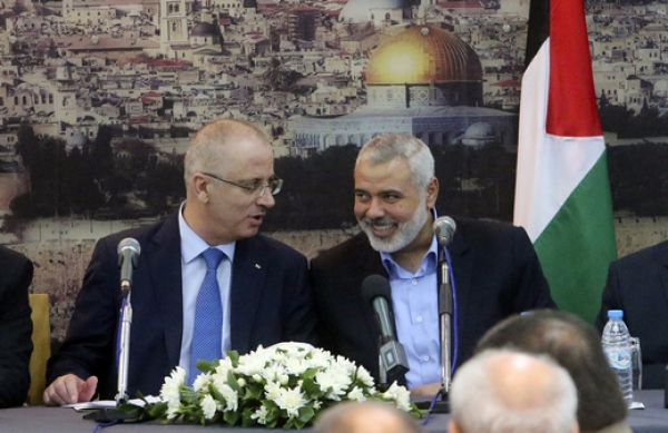 قال نائب رئيس المكتب السياسي لحركة حماس اسماعيل هنية، إن "الجميع يواجه مسؤولية كبيرة من أجل إعادة اعمار قطاع غزة". وأضاف خلال مؤتمر صحفي مع رئيس الوزراء رامي الحمد الله، أن "غزة وقع عليها ظلم كبير لأنها تعرضت لحروب ثلاثة في الفترة الأخيرة، ما يجعلها بحاجة ملحة لتضافر جهد الجميع من اجل اعادة اعمارها".مؤتمر صحفي يجمع الحمد الله وهنية في غزة: صامدون ومتضافرون وإسرائيل حاولت إفشال المصالحة .وصرّح هنية خلال المؤتمر الصحفي أيضا:"من المهم عدم التمييز بين الفلسطيين في الحكومة المقبلة بشأن قضية الموظفين"، وأكد أن "التحضير لانتخابات رئاسية وتشريعية وانتخابات المؤتمر الوطني من اولويات الحكومة".ودعى هنيّة لإستكمال ملف المصالحة الوطنية، وقال:"نحن أمام تحديات ليست سهلة داخليا وخارجيا"، وأكد أن "حسم الصراع مع الاحتلال هو في الضفة بكل ما تعنيه الكلمة وإن مطلبنا هو انهاء الاحتلال الى الابد وأن تكون لنا دولة فلسطينية".من جهته عاد رئيس الوزراء الفلسطيني رامي الحمد الله ووجه تحية إجلال لغزة وشهدائها، ولكل الشعوب التي ساندت غزة وهبّت لمساعدتها خلال العدوان الاخير، وقال الحمد الله: "آن للاحتلال أن يتعلم أن التفوق ليس بقوة الاحتلال، وأن الشعب الفلسطيني صامد على ارضه"، واوضح أن "الصراع مع اسرائيل لن ينتهي الا بالسلام العادل والشامل وتنفيذ قرارات الشرعية الدولية"، وحول المصالحة الوطنية أشار إلى أن "الاعتداءات من قبل اسرائيل كان هدفها افشال حكومة الوفاق الوطني"!!