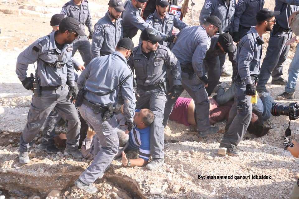 اندلعت صباح اليوم الإثنين، مواجهات بين شبان وجنود الاحتلال الإسرائيلي بالقرب من التجمع السكني الخان الأحمر شرق القدس المحتلة، حيث وفرت قوات الاحتلال التي قامت بقمع الحشود واعتقال 4 شبان، الحراسة للجرافات التي شرعت بشق الطرق في محيط التجمع السكني المهدد بالهدم.وطالت الاعتقالات الناشط رياض تيسير صلاحات من المرابطين في قرية الخان الأحمر، بالإضافة إلى نشطاء "سلام" ومتضامن أجنبي.إلى ذلك، واصلت جرافات الاحتلال ترافقها آليات عسكرية وقوات معززة من الجيش، منذ ساعات الصباح، تجريف الأراضي المحاذية للخان الأحمر لتسهيل مرور الآليات والسيارات العسكرية.وقامت الجرافات بشق الطرقات ومصارف المياه العادمة التي فتحها المستوطنون على القرية، حيث أغرقوا أراضيها، فيما اعتدت قوات الاحتلال على المتضامين الذين توافدوا لمنع تقدم الجرافات والآليات العسكرية.وقال محافظ القدس، عدنان غيث، لـ"وفا" إن "ما يجري في الخان يندرج في إطار استعدادات الاحتلال وتدريباته، لتهجير أهلها، وهدمها، بهدف تفريغ شرق القدس من المقدسيين، فمنذ فترة يقوم الاحتلال بعملية جس نبض للمواطنين والمعتصمين، لرؤية مدى جاهزيتهم للتصدي لجرائم الاحتلال".ولفت إلى أن الاحتلال أنهى تجهيز المكان المنوي نقل أهالي الخان إليه، وهو في المرحلة الأخيرة من ترتيباته، ما ينذر بكارثة في حال تم هدمه، موضحا أن ما جرى اليوم هو محاولة لتسهيل الطرقات للآليات العسكرية.وشدد على أن حملة التضامن مع أهالي الخان الأحمر تتسع وتزداد، ولن ترهبها هذه الإجراءات، ما يؤكد عزيمة الشعب الفلسطيني على مناهضة الاحتلال، وقراراته.وكانت سلطات الاحتلال قد أخطرت الأهالي بالخان الأحمر إقدامها على هدم التجمع السكني بحال لم يهدموا المنازل ذاتيا حتى الأول من تشرين الأول/أكتوبر الجاري، وذلك بموجب قرار صادر عن المحكمة العليا الإسرائيلية التي ردت التماس الأهالي لمنع الهدم والإخلاء.ويقطن الخان الأحمر نحو 200 فلسطيني، نصفهم من الأطفال وغالبية السكان من اللاجئين، بحسب تسجيلات وكالة الأمم المتحدة لغوث وتشغيل اللاجئين الفلسطينيين (الأونروا)، كما يضم التجمع السكني مدرسة تخدم 170 طالبا، من عدة تجمعات سكنية بدوية من قضاء القدس.ويحيط بالتجمع السكني العديد من المستوطنات، وتقع أراضيه ضمن المنطقة التي تستهدفها سلطات الاحتلال لتنفيذ المشروع الاستيطاني لعزل القدس عن الضفة الغربية.!!