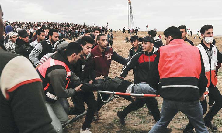 أصيب أربعون فلسطينيا برصاص الاحتلال الإسرائيلي في الجمعة الـ34 لمسيرات العودة وكسر الحصار، في نقاط التماس الخمس على الحدود الشرقية لقطاع غزة، والتي شارك فيها آلاف الفلسطينيين استمراراً للفعاليات الجماهيرية الهادفة إلى وضع حد للحصار الجائر المفروض على القطاع الساحلي منذ 12 عاماً.وأعلنت وزارة الصحة في غزة أن 40 إصابة وصلت للمشافي، منها ثلاث إصابات خطرة، جراء قمع الاحتلال لمسيرات العودة.وأطلقت قوات الاحتلال الإسرائيلي الرصاص الحيّ وقنابل الغاز على المشاركين في المسيرات، حتى على الذين لم يقتربوا من السياج الحدودي الفاصل. في المقابل، أطلق نشطاء فلسطينيون بالونات حارقة على الأراضي المحتلة بعد شهر على توقفها، في خطوة تؤكد السعي لإعادة الضغط على الاحتلال الإسرائيلي.وانتشر عشرات القناصة الإسرائيليين على التلال الرملية والأبراج العسكرية على الحدود مقابل نقاط التماس الخمس، وشاهد فلسطينيون كذلك آليات عسكرية إسرائيلية تنتشر في أكثر من مكان، منها دبابات من طراز ميركافاه.وكانت الهيئة الوطنية لمسيرات العودة وكسر الحصار قد أطلقت اسم "التطبيع جريمة وخيانة" على هذه الجمعة، وسط إصرار فلسطيني على المضي قدماً فيها، رغم التهديدات الإسرائيلية العنيفة التي أطلقها منسق أعمال حكومة الاحتلال في المناطق الفلسطينية، يؤاف مردخاي، عبر صفحته في "فيسبوك".ودعت الهيئة الوطنية الجماهير الفلسطينية إلى أوسع مشاركة في المسيرات، رفضًا للتطبيع واستمرارًا لدور الحراك حتى تحقيق أهدافه بشكلٍ كامل. وقالت في بيان الدعوة: "نشارك لنقول لمقاومتنا شكرًا ولنساندها في خياراتها، ودومًا التطبيع خيانة يا أبطال".وقبيل ساعات من التظاهرات، أبلغ رئيس حركة "حماس" في قطاع غزة، يحيى السنوار، مسؤول ملف فلسطين في المخابرات المصرية، اللواء أحمد عبدالخالق، أنّ مسيرات العودة مستمرة بالأساليب والأدوات التي تقرها القيادة العليا للمسيرة.ووفق بيان لـ"حماس"، فإنّ السنوار أكّد لعبد الخالق على أهمية كسر الحصار عن قطاع غزة وحق الشعب الفلسطيني في الحياة الحرة الكريمة، وشدد على أنّ حركته وفصائل المقاومة الفلسطينية لن تسمح للاحتلال بتكرار الاعتداء على قطاع غزة.وتأتي هذه المسيرات بعد يومين من جولة تصعيد هي الأعنف بين المقاومة الفلسطينية والاحتلال الإسرائيلي، واستهدفت المقاومة فيها مناطق غلاف غزة وعسقلان المحتلة بعشرات الصواريخ رداً على التسلل الإسرائيلي شرقي مدينة خان يونس جنوبي قطاع غزة، والذي أدى إلى استشهاد سبعة مقاومين ومقتل ضابط إسرائيلي.وتدخلت مصر وقطر والأمم المتحدة والنرويج لوقف جولة التصعيد الإسرائيلي، وأعلنت المقاومة التزامها بوقف إطلاق النار طالما التزم به جيش الاحتلال الإسرائيلي.!!
