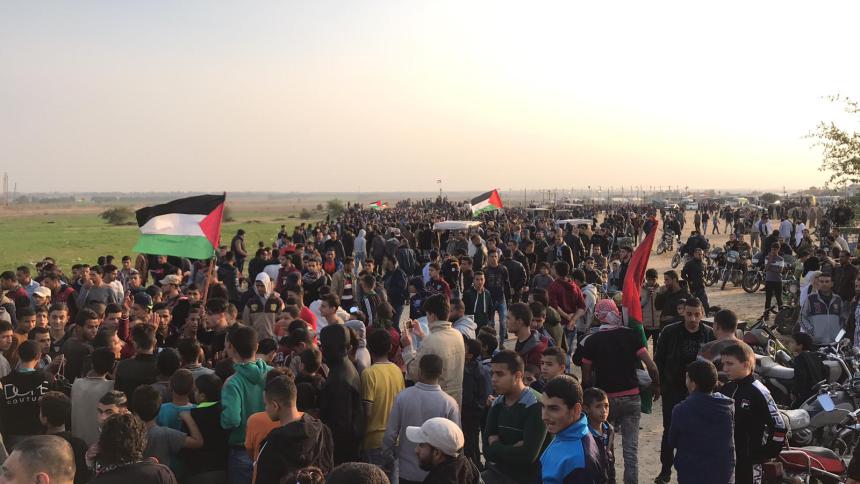 أصيب 13 متظاهرًا على الأقل اليوم الجمعة، برصاص الاحتلال شرق قطاع غزة، بينهم صحفي شرق البريج، مع بدء مسيرات العودة المستمرة منذ 8 أشهر.وبدأ مواطنون بعد صلاة عصر اليوم بالتوافد إلى خيام العودة المقامة على أطراف شرق القطاع. ودعت الهيئة العليا لمسيرات العودة في غزة إلى أوسع مشاركة شعبية في احتجاجات اليوم تحت شعار (التضامن الدولي مع الشعب الفلسطيني).وحثت الهيئة على أوسع مشاركة شعبية في خيام مسيرات العودة ""تأكيدًا على مظلومية الشعب الفلسطيني وتمسكه بحقه في العودة وكسر الحصار والحفاظ على مسيرات العودة وكسر الحصار بأدواتها الشعبية والسلمية".وطالبت الهيئة الدول العربية والإسلامية بـ"كسر الحصار عن غزة ودعم الصمود الفلسطيني في القدس والضفة الغربية".ومن المقرر أن تنظم هيئة مسيرات العودة اليوم مؤتمرًا للإعلان عن توجيه دعوة لحظر تسليح إسرائيل "بسبب جرائمها بحق الفلسطينيين".من جهتها، قالت حركة حماس في بيان صحفي إن "مسيرات العودة ماضية والجماهير الفلسطينية تخرج اليوم تأكيداً على استمراريتها ولمطالبة العالم بترجمة يوم التضامن مع الشعب الفلسطيني لأفعال وإجراءات عملية علي الأرض".وصادف يوم أمس اليوم العالمي للتضامن مع الشعب الفلسطيني، الذي أعلنته الأمم المتحدة عام 1977 بالتزامن مع تاريخ صدور قرار تقسيم فلسطين في 29 تشرين ثان/نوفمبر هام 1947.!!