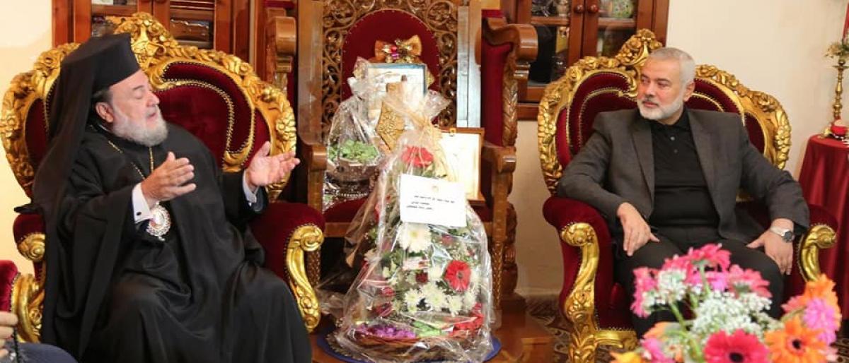 شدّد رئيس المكتب السياسي لحركة المقاومة الإسلامية "حماس"، إسماعيل هنية، على عمق العلاقة بين المسلمين والمسيحيين في فلسطين، والعيش المشترك القائم.وأكّد هنية في بيان صدر عن مكتبه، اليوم الأربعاء، خلال زيارته الكنيسة الأرثوذكسية بغزة، برفقة وفد من الحركة، أن "الزياة تأتي لتُثبت أن المسلمين والمسيحيين في فلسطين يد واحدة ومصير مشترك".وعبّر هنية عن تضامنه مع المسيحيين في كل فلسطين، وخاصة في القدس، الذين يتعرّضون لمحاولات التهويد وسرقة المقدّسات المسيحية، مؤكداً أن أي قرار يستهدف المقدسات المسيحية والإسلامية مرفوض، ولن يتمكّن من تغيير هوية الأرض.وأعرب عن تطلّعاته لاستعادة الوحدة الوطنية الفلسطينية "على أُسس سليمة"، مؤكداً التزام حركته بتحقيق وحدة الشعب، وإصراره على استعادتها رغم العقبات المختلفة.ويوجد في قطاع غزة قرابة 700 مسيحي، حيث يتبع نحو 70% منهم طائفة الروم الأرثوذكس، في حين يتبع البقية طائفة اللاتين الكاثوليك.وانتشرت المسيحية في فلسطين خلال الحُكم الروماني، وكانت البشارة بمدينة الناصرة، بحسب كتاب "حياة القديس برفيريوس أسقف غزة".!!