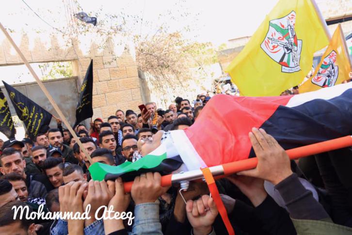 شيّع مواطنون ظهر اليوم السبت، جثمان الفتى أيمن أحمد عثمان فارس (17 عامًا)، في بلدة سلواد شرق رام الله. وأطلق جنود الاحتلال النار على الفتى حامد، وفتى آخر مساء الجمعة، بدعوى محاولتهما إلقاء الحجارة قرب شارع (60 الاستيطاني). وهي الرواية التي فنّدتها مصادر مقربة من عائلة الشهيد، مشيرةً إلى أن أيمن وصديقه كانا يتنزهان في المنطقة. وشيّع مواطنون ظهر اليوم السبت، جثمان الشهيد حمدان العارضة من بلدة عرابة قضاء جنين. وسلّمت سلطات الاحتلال جثمان الشهيد حمدان العارضة (60 عامًا) من بلدة عرابة جنوب غرب جنين، مساء أمس الجمعة، قرب حاجز "سالم" العسكري، بعد أكثر من 40 يومًا على استشهاده في مدينة البيرة. وفي رفح شيعت جماهير فلسطينية غفيرة، اليوم السبت، جثمان الشهيد إيهاب عابد (25 عامًا) الذي قتلته قوات الاحتلال الإسرائيلي خلال مشاركته في المسيرات الحدودية شرق مدينة رفح جنوب قطاع غزة.وانطلق موكب التشييع من مستشفى أبو يوسف النجار باتجاه منزل عائلته لإلقاء نظرة الوداع عليه، حيث تم أداء الصلاة على جثمانه قبل أن يدفن في مقبرة الشهداء بالمدينة.ورفع المتظاهرون العلم الفلسطيني ورايات الفصائل الفلسطينية، مرددين شعارات تطالب المقاومة بحماية المتظاهرين العزل المشاركين في مسيرات العودة وكسر الحصار.وكانت قوات الاحتلال قتلت الشاب عابد، وأصابت 27 فلسطينيًا من بينهم 3 بحالة خطيرة خلال مشاركتهم بالمسيرات أمس!!