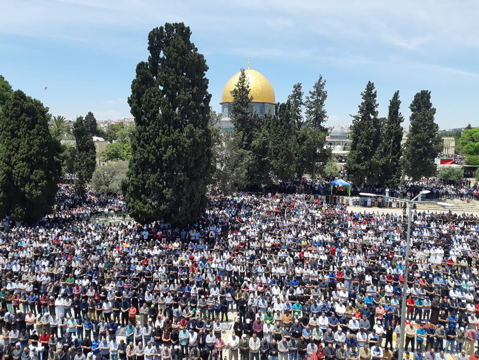 أدى حوالي 180 ألف مصل الصلاة في المسجد الأقصى في الجمعة الأولى من شهر رمضان، وسط تشديدات أمنية إسرائيلية في القدس القديمة وفي محيطها. وقال الشيخ عزام الخطيب مدير عام أوقاف القدس وشؤون المسجد الأقصى "وصل حوالي مئة وثمانين ألف مصل إلى المسجد الأقصى رغم الحواجز والانتشار الأمني الكبير". مضيفًا أنّ الصلاة "انتهت على خير داخل الأقصى وباحاته وقمت بتفقد كل المرافق من مراكز إسعاف ومراكز خدمات أخرى للمصلين".وعززت شرطة الاحتلال قواتها منذ ساعات الصباح الأولى في القدس وفي أزقة البلدة القديمة، فيما فرضت قيودًا على دخول الشبان للأقصى. وقال مصور فرانس برس الذي تواجد منذ الخامسة صباحًا على معبر قلنديا الفاصل بين مدينة القدس ومدينة رام الله إن "أعدادًا هائلة من المصلين الذين جاؤوا من مدن شمال الضفة الغربية عبروا معبر قلنديا الى مدينة القدس الشرقية".ولم تمانع إسرائيل لأول مرة منذ سنوات بتواجد عناصر من الشرطة الفلسطينية ومن الارتباط الفلسطيني في محيط معبر قلنديا للمساهمة في تسهيل مرور المصلين.!!