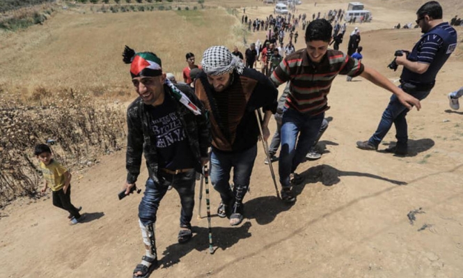 أصيب 47 فلسطينيا بإصابات متفاوتة، بعد ظهر اليوم، الأربعاء، برصاص قوات الاحتلال الإسرائيلي، كما أصيب آخرون بحالات اختناق جراء إطلاق قنابل الغاز باتجاه المتظاهرين.وأكدت مصادر فلسطينية وقوع 3 إصابات، على الأقل، بالرصاص الحي.وأعلن المتحدث باسم وزارة الصحة في قطاع غ زة، أشرف القدرة، أن 47 فلسطينيا أصيبوا بإصابات متفاوتة بقمع قوات الاحتلال أثناء مشاركتهم السلمة في مسيرة إحياء النكبة المليونية على حدود غزة.إلى ذلك، اندلع حريق في المجلس الإقليمي "سدوت نيغيف" جراء إطلاق بالون حارق من قطاع غزة. وتعمل فرق الإطفاء على إخماد الحريق.وقال المتحدث باسم الجيش الإسرائيلي إن نحو 10 آلاف فلسطيني يتظاهرون في عدة مواقع قرب السياج الحدودي مع قطاع غزة، مضيفا أنهم يقومون بإشعال الإطارات ورشق الحجارة.وقال أيضا إنه تم إلقاء عدة عبوات ناسفة في داخل قطاع غزة، وتم رصد عدة محاولات اقتراب من السياج الحدودي.وأضاف أن الجنود الإسرائيليين يستخدمون وسائل تفريق المظاهرات.وقال المتحدث باسم الجيش الإسرائيلي إن نحو 10 آلاف فلسطيني يتظاهرون في عدة مواقع قرب السياج الحدودي مع قطاع غزة، مضيفا أنهم يقومون بإشعال الإطارات ورشق الحجارة.وقال أيضا إنه تم إلقاء عدة عبوات ناسفة في داخل قطاع غزة، وتم رصد عدة محاولات اقتراب من السياج الحدودي.وأضاف أن الجنود الإسرائيليين يستخدمون وسائل تفريق المظاهرات.وفي ظل إضراب شامل عمّ قطاع غزة، بدأت جموع الفلسطينيين في القطاع بالتوافد على الحدود، في الذكرى الـ71 لنكبة الشعب الفلسطيني، وتأكيدا على حق العودة، وذلك في أعقاب دعوة الهيئة الوطنية لمسيرات العودة وكسر الحصار.وبدأت الحافلات تتحرك من مساجد وساحات قطاع غزة باتجاه الحدود الشرقية.وكانت الهيئة الوطنية قد طلبت من المشاركين عدم الاقتراب من السياج الحدودي، والحفاظ على المسافة الآمنة على بعد 300 متر منه، للتأكيد على سلمية المسيرات.وقالت مصادر محلية إن قوات الاحتلال بدأت بإطلاق النار وقنابل الغاز باتجاه المتظاهرين. وأصيب عدد من المتظاهرين بحالات اختناق.ونقل عن شهود عيان قولهم إن جنود الاحتلال الذين يتمركزون خلف التلال والكثبان الرملية وداخل آلياتهم العسكرية المنتشرة على طول السلك الفاصل، فتحوا النار وأطلقوا وابلا كثيفا من قنابل الغاز المسيل للدموع تجاه المتوافدين إلى المكان. وأضافت المصادر أن قوات الاحتلال وضعت سيارات لضخ المياه العادمة تجاه المتظاهرين على المناطق الحدودية كافة.وكان قد أعلن الجيش الإسرائيلي عن حالة الاستنفار في صفوف قواته وتعزيزها، فيما أغلق الطرق في غلاف غزة تحسبا لأي عمليات تسلل من المتظاهرين.وعمّ الإضراب الشامل، اليوم، كافة مدن ومخيمات قطاع غزة في الذكرى الحادية والسبعين للنكبة الفلسطينية.وكانت قد انتشرت الطواقم الطبية في نقاط محددة من مخيمات العودة فيما نشرت الهيئة عددا من المتطوعين للحفاظ على النظام. كما أقامت خياما كبيرة في مخيمات العودة الخمسة لاستقبال المتظاهرين .وأكدت الهيئة على سلمية التظاهرات على حدود قطاع غزة.ومن المقرر أن تستمر التظاهرات حتى الخامسة مساء ، يتخللها فقرات تراثية ورياضية إضافة إلى كلمات من قبل قادة الفصائل الفلسطينية.وفي سياق ذي صلة، أصيب ظهر اليوم، صياد فلسطيني برصاص القوات البحرية الإسرائيلية في عرض بحر مدينة غزة.وأفاد مسؤول لجان الصيادين، زكريا بكر، بأن بحرية الاحتلال أصابت صيادا بالرصاص المعدني المغلف بالمطاط في عرض بحر غزة. وانطلقت مسيرة حاشدة من أمام ضريح الرئيس الراحل، ياسر عرفات، حمل المشاركون فيها لافتات تؤكد على حق العودة، ورايات سوداء وأعلام فلسطين، ولافتات تحمل أسماء القرى المهجرة، وكذلك مفاتيح العودة، تتقدمهم فرق كشفية.وبعد أن وصلت المسيرة إلى ميدان الشهيد ياسر عرفات، انطلقت في تمام الساعة الثانية عشرة ظهرًا صافرات الإنذار في الميادين العامة وعبر مكبرات الصوت في المساجد لمدة 71 ثانية بعدد سنوات النكبة، فيما أطلقت المركبات المارة أبواقه