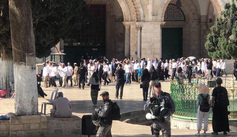 اقتحم عشرات المستوطنين صباح اليوم الاثنين، باحات المسجد الأقصى المبارك بحراسة شرطة الاحتلال.وأغلقت شرطة الاحتلال الساعة الحادية عشر صباحًا باب المغاربة، عقب انتهاء فترة الاقتحامات الصباحية للمتطرفين اليهود الذين دنسوا باحاته، احتفالًا بما يسمى عيد "الأسابيع" اليهودي..وقال مسؤول العلاقات العامة والإعلام بدائرة الأوقاف الإسلامية بالقدس المحتلة فراس الدبس لوكالة "صفا" إن 139 مستوطنًا اقتحموا المسجد الأقصى على عدة مجموعات متتالية، ونظموا جولات استفزازية في باحاته بحماية مشددة من شرطة الاحتلال الخاصة.أوضح أن مرشدين يهود قدموا شروحات عن "الهيكل" المزعوم للمستوطنين أثناء اقتحامهم للأقصى، وحاول بعضهم أداء طقوس وشعائر تلمودية في باحات المسجد.وواصلت شرطة الاحتلال التضييق على دخول المصلين الوافدين من القدس والأراضي المحتلة عام 1948 للمسجد الأقصى، ودققت في هوياتهم الشخصية، واحتجزت بعضها عند بواباته الخارجية.وتأتي اقتحامات اليوم وسط دعوات أطلقتها "جماعات الهيكل" المزعوم لأنصارها وجمهور المستوطنين لاستباحة الأقصى تزامنًا مع بدء عيد "الأسابيع" اليهودي.ويتعرض المسجد الأقصى يوميًا (عدا يومي الجمعة والسبت) لسلسلة اقتحامات وانتهاكات من قبل المستوطنين وأذرع الاحتلال المختلفة، في محاولة لبسط السيطرة الإسرائيلية الكاملة عليه، وتقسيمه زمانيًا ومكانيًا.!!