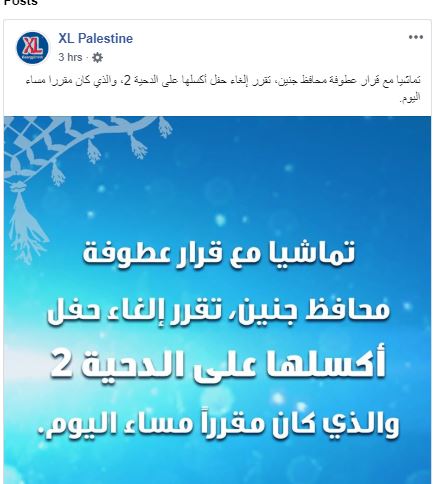 أعلن محافظ جنين اللواء أكرم الرجوب إلغاء حفلة أكسلها" التي كانت ستنظمها شركة xL لمشروبات الطاقة مساء اليوم السبت، في جنين.وفور نشر إعلانات عن الحفل، انتقد العشرات من النشطاء هذه الدعوة عبر وسائل التواصل الاجتماعي، مطالبين بإلغاء الحفل ومنتقدين بشدة السبعاوي، وذلك بعد أن حيى جيش الاحتلال في احدى حفلاته.وقال السبعاوي وقتها: " كل التحية والتقدير للقيادة، للجيش الإسرائيلي معنا، ولاد عمنا". وتعقيبا على قرار الإلغاء أكد أمين سر حركة فتح في جنين، عطا أبو رميلة، بأن مدينة جنين لن تغني الليلة مع المغني الشعبي، أيمن السبعاوي، وذلك لقيامه بتوجيه التحية لجيش الاحتلال في احدى حفلاته بالداخل المحتل.هذا وقد أعلن محافظ جنين اللواء أكرم الرجوب، عن إلغاء الحفل الغنائي الترويجي الذي كان من المقرر اقامته مساء اليوم في مدينة جنين وتحديداً حي البساتين، دون ذكره للتفاصيل.وبدوره قال أبو رميلة في حديث لموقع وطن الفلسطيني: "السبعاوي مرفوض لدينا شخصياً لأنه حيا بصوته عدة مرات جيش الاحتلال خلال إحياء حفلات في الداخل المحتل، ولا يشرفنا استقباله في حفلة عامة في جنين".وأضاف: "بقرار من حركة فتح، توجهت إلى موقع الحفل وأبلغت القائمين عليه وفي مقدمتهم الشركة الراعية بضرورة إلغاء الحفل الذي يضم السبعاوي وفريق (جبد)، وجاء القرار بموافقة المحافظ اللواء أكرم الرجوب".وأوضح بأنه قد تم إبلاغ مالك الأرض التي سيقام عليها الاحتفال، بعدم السماح باستكمال نصب معدّات الحفل.فيما أكد بأن الفرق المشاركة في الحفل الذي تنظمة إحدى شركات مشروبات الطاقة، تحت عنوان "أكسلها ع الدحية 2"، لم يحصلوا على ترخيص لإقامة الحفل بناءً على معلومات حصل عليها من الشرطة.وأضاف: "نحن نقف ضد أي أحد له علاقة بالتطبيع مع الاحتلال، ولا يشرفنا أن يغني السبعاوي في أي محافظة، ويجب أن يحارب وأن لا نستمع له".وبدورها استجابت الشركة الراعية للحفل لقرار حركة فتح بإلغاء حفل أكسلها على الدحية 2 وذلك وتماشياً مع قرار محافظ جنين أكرم الرجوب. وقبلل صدور قرار المحافظ وحركة فتح في جنين بإلغاء حفل "السبعاوي"، عجت مواقع التواصل الاجتماعي بتعليقات ومنشورات تؤكد على رفض إحياء حفل "السبعاوي" بسبب اطلاقه التحية لجيش الاحتلال في احدى حفلاته، فيما تبادل البعض تسجيلاً لفيديو قصير يظهر به السبعاوي وهو يقف على المنصة ويقول: "تحية للجيش الإسرائيلي .. هدول ولاد عمنا"! وقد أثار الفيديو المتداول للسبعاوي استهجاناً أهالي جنين، واصفين إياه بالـ"الوقح والجاهل والمنحط" بحسب ما كتب القيادي الفتحاوي جمال حويل.!!