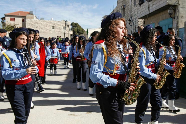احتفل مساء الاحد في رام الله باضاءة شجرة عيد الميلاد المجيد في ساحة راشد حدادين امام دار بلدية رام الله.وشارك في حفل اضاءة شجرة الميلاد الدكتور محمد اشتية ممثلا عن محمود عباس، وحشد من المسؤولين ورجال الدين ومئات المواطنين.ونصبت شجرة الميلاد قرب بلدية رام الله، كما أطلقت الألعاب النارية في سماء المدينة، وعزفت الموسيقى وقدمت الأغاني المختلفة احتفالا بهذه المناسبة.وقالت محافظ رام الله والبيرة ليلى غنام إن المحافظة تحتفل بالكل الفلسطيني في هذه المناسبة، وصاحب الحق لديه امل بالحياة.وأردفت " لكن في نفس الوقت لا ننسى شهداءنا وأسرانا، ولا ننسى دمعة أم الشهيد سامي ابو دياك".وتابعت "العيد للمسيح والمسيح فلسطيني، والمحتل يحاول بث اليأس لكن سنفرح وننشر السعادة".بدوره، بين موسى حديد رئيس بلدية رام الله، انه رغم كل المعاناة جراء انتهاكات الاحتلال، لكن كانت هناك مساحة الفرح لأبناء المدينة. في هذه الاثناء انطلقت في مدينة بيت لحم “مهد المسيح” الاحتفالات بأعياد الميلاد المجيدة، بإضافة شجرة الميلاد، في ساحة كنيسة المهد، وذلك بعد وصول قطعة أثرية من “مذود” السيد المسيح إلى المدينة.وينتظر أن تشهد المدينة وتحديدا كنيسة المهد التي شهدت ميلاد السيد المسيح، خلال الفترة القادمة، وصول العديد من الوفود السياحية من العديد من الدول الأجنبية، مع بدء التحضيرات لإقامة القداس بمناسبة الأعياد المجيدة، التي تحتفل فيها الطوائف الغربية والشرقية.كذلك من المقرر أن تشهد المدينة العديد من الاحتفالات الخاصة بهذه المناسبة، قبل يومي الاحتفالين الكبيرين المقررين نهاية الشهر الجاري، وبداية الشهر القادم، حسب التقويم الغربي والشرقي.ويأمل العاملون في قطاع السياحة، أن يعود هذا الموسم بأرباح كثيرة، خاصة وأنهم كانوا يشتكون في سنوات ماضية، من معوقات إسرائيلية، كانت تحول دون وصول أعداد كبيرة من السياح، خاصة في ظل تحكم الاحتلال في المعابر الواصلة إلى الضفة.وكان رئيس الوزراء محمد اشتية، ممثلاً عن الرئيس محمود عباس، قام بإضاءة الشجرة التي تم نصبها في ساحة المهد وسط أجواء من البهجة، وذلك بمشاركة محافظ بيت لحم كامل حميد، ووزيرة السياحة والآثار رولا معايعة، ورئيس بلدية بيت لحم أنطون سلمان، وحارس الأراضي المقدسة فرانشسكو باتون، ومدراء الأجهزة الأمنية والمؤسسات الرسمية والشعبية وممثلو الكنائس، والعديد من شخصيات ورجال دين مسيحيين ومسلمين وجمع غفير من سكان المحافظة.وقال اشتية في كلمته خلال الاحتفال: “نريد أن نُسمع العالم أن مهد السيد المسيح لا يستحق جدارا للفصل، وأن الطريق إلى مهد السيد المسيح لا يجب أن تعيقها الحواجز، وأن يأتوا ليروا كيف يزين الفلسطينيون معاً، أشجارهم، ويواصلون رسالة الإخاء والمحبة، رسالة المواطنة الواحدة”.وأكدت الوزيرة معايعة، وجود ارتفاع ملحوظ في عدد السياح لهذا العام، وقالت إن فلسطين سجلت نمواً سياحياً، كما تطرقت خلال كلمتها بهذه المناسبة، إلى أهم انجازات الوزارة خلال العام الحالي في مجال السياحة والتراث الثقافي، وأهمها استحداث تطبيق على الانترنت لتنظيم زيارة السياح لكنيسة المهد، وتحديد مواعيد لاستقبالهم لكي لا تطول فترة انتظارهم ليتمكنوا من زيارة المغارة وليستفيدوا من وقتهم للتعرف أكثر على مدينة بيت لحم وأهلها وأهم الأماكن التراثية فيها.وأشارت إلى أن الأعداد الكبيرة للسياح الذين يزورون كنيسة المهد دفعت بالوزارة للحديث مع القائمين على الكنيسة لزيادة ساعات الزيارة.يذكر أنه جرى الإعلان في بيت لحم مساء السبت عن بدء احتفالات اعياد الميلاد، بوصول قطعة أثرية من “مذود” السيد المسيح إلى المدينة.وكانت القطعة الخشبية التي لا يتعدى طولها سوى سنتيمترات، وهي جزء من “المذود” الذي وضع فيه السيد المسيح لحظة ولادته، محفوظة في كنيسة سانتا ماريا ماجوري في روما، وجرى تسليمها في وقت سابق من هذا الأسبوع إلى راعي كنيسة بيت لحم.وعرضت القطعة على الجمهور في مركز نوتردام في القدس، ق