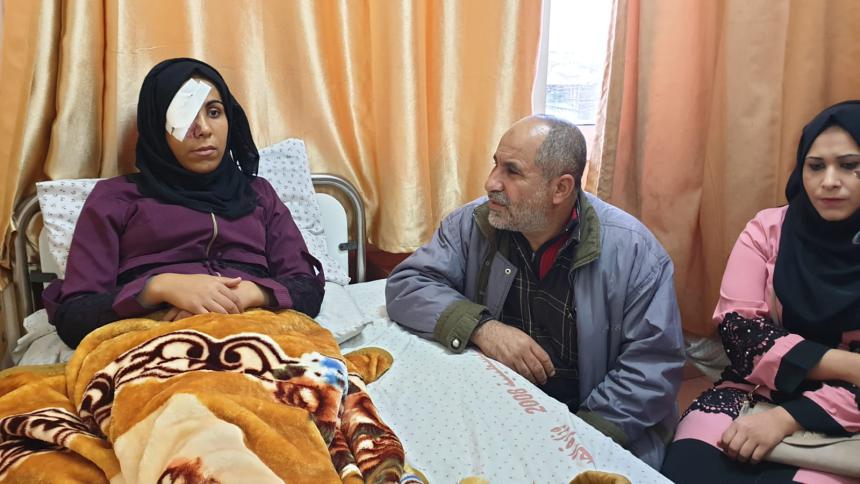 لم تكن تعلم الفتاة مي أبو رويضة من سكان مخيم المغازي، وسط قطاع غزة، أن مشاركتها في مسيرات العودة وكسر الحصار، أول من أمس الجمعة، على حدود غزة، ستكون ربما الأخيرة بعد أن فقدت عينها اليمنى جراء تعمد قناص من الاحتلال إصابتها بشكلٍ مباشر.ولم يجد الأطباء في مستشفى العيون بحي النصر بمدينة غزة، حلًا سوى أن يتم إجراء عملية جراحية للفتاة البالغة من العمر (22 عامًا)، من أجل إزالة العين بعد أن تسببت الرصاصة بخروجها من مكانها، في عملية استغرقت نحو ساعتين مرت بصعوبة على عائلة الفتاة والتي عاشت أوقاتًا عصيبة خشيةً من تأثير سلبي في المستقبل على حالتها.وتقول الفتاة مي أبو رويضة في حديث لـ "القدس" دوت كوم إن الجندي الإسرائيلي القناص تعمد "فقأ" عينها بإصابتها بشكل مباشر، مشيرةً إلى أن الجنود تعمدوا إطلاق قنابل الغاز تجاه عدد من الفتيات والشبان كانوا بجانب بعضهم البعض.وأشارت إلى أنه بعد ذلك ابتعدوا من المكان، وحين كانت تقف مع صديقاتها فوجئت بشيء ما أصابها وأنها سقطت على الأرض، مشيرةً إلى أنها فوجئت بالدماء تنزف من عينها اليمنى التي تبين فيما بعد أنها أُصيبت برصاصة معدنية مغلفة بالمطاط.وبينت أنه تم نقلها للمشفى الميداني شرق مخيم البريج، ومن ثم نُقلت إلى مستشفى شهداء الأقصى، واضطر الأطباء هناك لنقلها إلى مستشفى العيون بمدينة غزة، وتقرر بعد إجراء صورة للعين بإجراء عملية لها.ودعت إلى رفع قضايا على الاحتلال الإسرائيلي بسبب استهدافه المتكرر للمتظاهرين السلميين على الحدود، مضيفةً: "شاركنا بمسيرة سلمية، لا معنا سلاح، ولا أي شيء، ورغم ذلك يتم إطلاق النار علينا بشكل متعمد".وأشارت إلى أنها كانت تشارك في مسيرات العودة منذ بدايتها، لافتةً إلى أن الاحتلال يتعمد استهداف المتظاهرين بالرصاص الحي وغيره من أجل منعهم من العودة للمشاركة في تلك المسيرات التي تطالب بحق سكان غزة برفع الحصار وتحقيق مطالبهم العادلة. كما قالت.وناشدت الرئيس محمود عباس العمل على توفير العلاج المناسب لها من خلال زرع قرنية لكي تعيش كما باقي الفتيات. مضيفةً "بأحلم إني أرجع أشوف ثاني ويزرعولي قرنية ويقدمولي العلاج".من جانبه قال والدها سليمان أبو رويضة، إن ابنته تعودت على المشاركة في المسيرات لأنها تشعر بأن هذه المشاركة تساهم في النضال ضد الاحتلال، ولرغبتها بالعيش كما باقي الشعوب الحرة وتدافع عن وطنها.وأشار إلى أن ابنته متحمسة وشجاعة وأنها كانت تشارك باستمرار بشكل سلمي مع صديقاتها وترفع العلم الفلسطيني الذي تعتز فيه كثيرًا. مضيفًا "هذا احتلال بغيض يقاتل الناس العزل، وابنتي لم يكن معها شيء".وذكر أنه حين تلقى نبأ إصابتها كان موجوداً في البيت، وخرج بسرعة إلى المستشفى لمتابعة حالتها، مشيرًا إلى أن ابنته تعاني من كسر في الفك ومشاكل في الجفن إثر الإصابة.وبيّن أنه حين دخلت غرفة العمليات كان يشعر بالقلق الشديد على ما ستؤول إليه الحالة الصحية لابنته، مشيرًا إلى أنها بحاجة للرعاية الطبية الكاملة.وناشد الجهات المسؤولة والمختصة تحمل مسؤولياتهم والقيام بواجبهم تجاه ابنته مي، وتوفير ما تيسر لهم من خدمتها لكي تعود لطبيعتها، مناشدًا كل الضمائر الحية الوقوف بجانب ابنته ومساعدتها على تخطي الظروف الحالية.وقد تعاملت الطواقم الطبية مع 37 اصابة مختلفة (منها 4 بالرصاص الحي و 10 بأعيرةٍ معدنية مغلفة بالمطاط)، ومن بين المصابين 10 أطفال جراء اعتداء قوات الاحتلال الاسرائيلي على المشاركين السلميين في الجمعة الـ83 لمسيرة العودة وكسر الحصار شرق قطاع غزة.!!