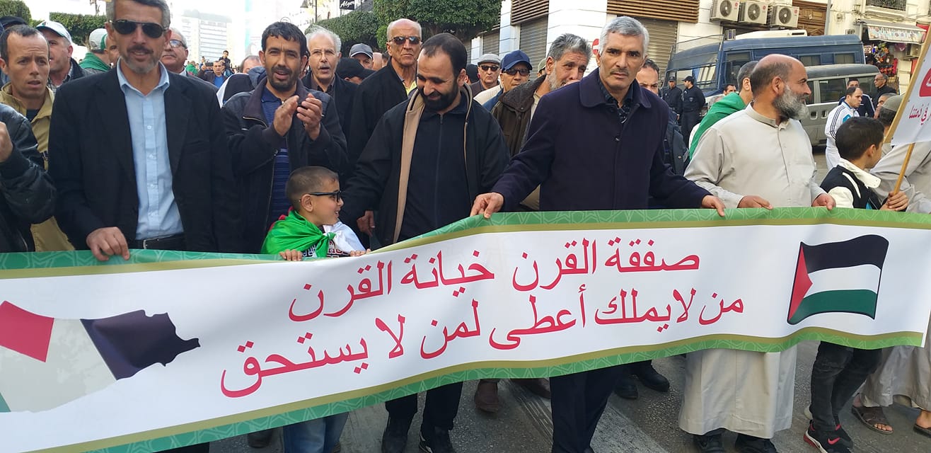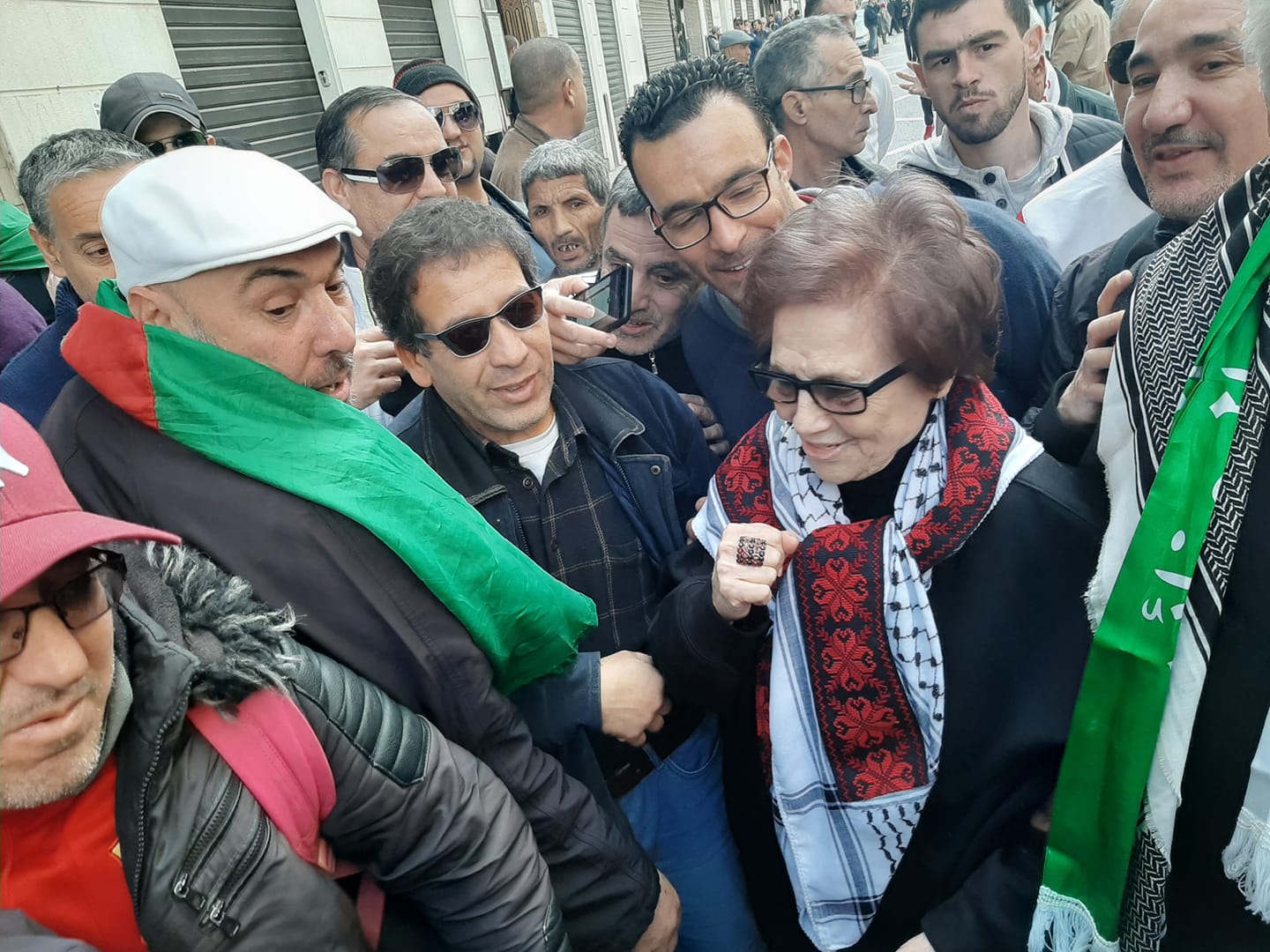 خرجت حشود من الجزائريين في العاصمة ومدن أخرى للجمعة الـ50 منذ بداية الحراك الشعبي، وتميزت جمعة اليوم بتجديد دعم القضية الفلسطينية ورفض “صفقة القرن” التي طرحها الرئيس الأمريكي دونالد ترامب، فضلا عن استحضار ذكرى الراحل عبد الحميد مهري أحد رموز ثورة التحرير وفترة ما بعد الاستقلال.وشهدت العاصمة الجزائرية تعزيزات أمنية كبيرة، علما أن السلطات الأمنية أعلنت عن توقيف شخص كان يحضر لعملية انتحارية ضد المظاهرات هذا الجمعة، دون ان يمنع ذلك المتظاهرين من النزول إلى الشارع، بالعكس فإن الكثيرين ممن لم يكونوا ينوون المشاركة في المظاهرة أصروا على النزول تحديا لمثل هذه التهديدات.وفي المقابل يتواصل التضيق والقمع الأمني على الحراك الشعبي السلمي، خاصة بغرب البلاد، مثلما حدث في ومدينتي معسكر وتيارت، حيث تدخلت قوات الأمن لقمع المسيراات واعتقلت عداا من المتظاهرين، من بينهم الناشط الحاج غرمول، الذي كان أول من خرج رافعا لافتة ضد الولاية الخامسة لبوتفليقة، و الذي تم سجنه منذ فترة لشهور، قبل إطلاق سراحه.وتلونت المظاهرات بألوان العلم الفلسطيني، وكانت القضية الفلسطينية حاضرة في الهتافات واللافتات التي رفعت لرفض ما سمي بـ « صفقة القرن »، ورفض المخططات الأمريكية والصهيونية للاستيلاء على ما تبقى من أراضي فلسطين بدعوى السلام، وأعلن المتظاهرون دعمهم للقضية الفلسطينية ولحقوق الشعب الفلسطيني كاملة غير منقوصة. وشهدت مظاهرة العاصمة حضور هم المجاهدة جميلة بوحيرد أيقونة الثورة الجزائرية، التي أصرت على المشاركة وهي تلبس الكوفية الفلسطينية، رغم أن بوحيرد التي تعاني صحيا، لم تعد تنزل إلى الشارع منذ أسابيع، وقد كان حضورها حدثا كبيرا في أوساط المتظاهرين، وأحاط الكثير منهم بها من أجل الحديث إليها وأخذ صور معها.وكانت المظاهرات فرصة لإحياء ذكرى الراحل عبد الحميد مهري أحد رموز ثورة التحرير وفترة ما بعد الاستقلال، بمناسبة ذكرى وفاته الثامنة مهري الذي ترأس حزب جبهة التحرير الوطني في نهاية الثمانينيات وبداية التسعينيات، وهي أخطر مرحلة تعيشها البلاد، والذي حاول فك ارتباط الحزب مع السلطة، وراح يبحث عن حل سياسي للأزمة الدموية التي كانت تعيشها البلاد، وهو ما كلفه منصبه، بعد أن تعرض لما عرف بالمؤامرة العلمية التي كانت في الحقيقة انقلابا قاده بعض المسؤولين في الحزب بإيعاز من مسؤولين في جهاز الاستخبارات آنذاك، وتعرض مهري بعدها لظلم وتهميش وحرمان من حقوقه، وصلت حد قطع خط الهاتف ببيته، واضطراره لبيع بيته وأثاثه لعلاج زوجته، لكن الرجل لم يحمل يوما ضغينة، ولم يشخص خلافه مع السلطة، وبقيت جملته الشهيرة « نحن في زمن الرداءة، وللرداءة أهلها » حاضرة في الأذهان، وصالحة لتوصيف الكثير من الأوضاع.!!