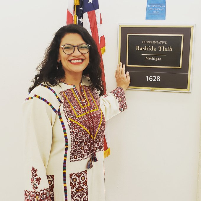 عبرت البرلمانية رشيدة طليب (ديمقراطية من ميشيغان) عن احتجاجها على خطاب الرئيس الأمريكي دونالد ترامب بشأن “حالة الاتحاد” بأسلوب يتميز بالاناقة والوطنية حيث ارتدت ثوباً فلسطينياً مطرزاً أبيض اللون في قاعة الكونغرس.