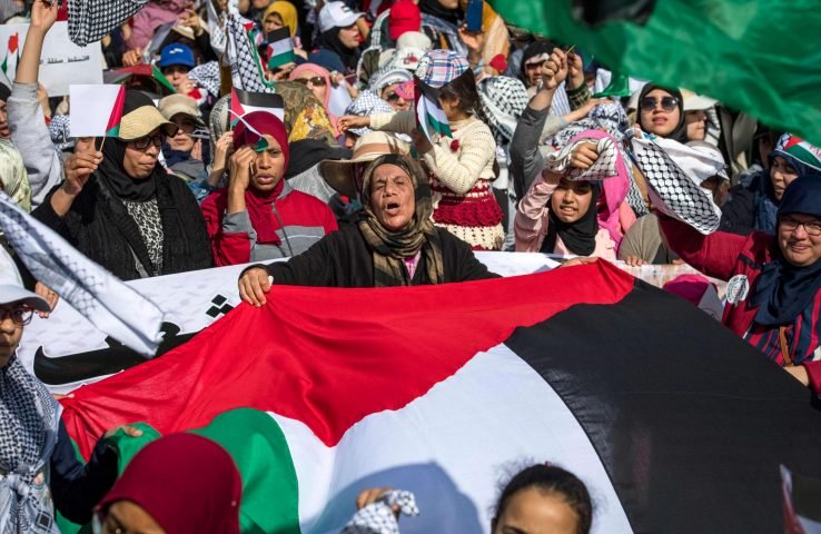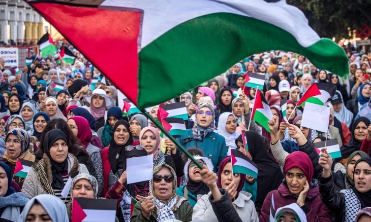 خرج عشرات الألوف من المغاربة الأحد في شوارع العاصمة الرباط في “مسيرة الشعب المغربي ضد صفقة القرن” للتنديد بـ”صفقة القرن” وتأكيد دعمهم للشعب الفلسطيني ونضالاته من أجل تحرير وطنه وإقامة دولته المستقلة وعاصمتها القدس الشريف.وتقدمت المسيرة قيادات حزبية ونقابية وجمعوية من مختلف التوجهات والأحزاب السياسية اليسارية وذات المرجعية الإسلامية بالإضافة لزعماء وطنيين وقادة النقابات والهيئات الإسلامية، منها الأمين العام لحزب الاستقلال نزار بركة، والأمين العام لحزب التقدم والاشتراكية نبيل بنعبد الله، والأمينة العامة للحزب الاشتراكي الموحد نبيلة منيب، وسليمان العمراني نائب الأمين العام لحزب العدالة والتنمية، ورئيس حركة التوحيد والإصلاح عبد الرحيم الشيخي، والناطق الرسمي باسم العدل والإحسان فتح الله أرسلان، والسفير الفلسطيني بالرباط جمال الشوبكي.ورفع المتظاهرون الذين أحرقوا في ختام مسيرتهم العلم الإسرائيلي وداسوا عليه بأقدامهم، الأعلام الفلسطينية والمغربية جنبا إلى جنب، مرددين شعارات موحدة تتمحور حول رفض الخيانة، ودعم القضية الفلسطينية والشعب الفلسطيني، وإدانة مباركة عدد من الدول لـ”صفقة القرن”، واعتبار هذا التواطؤ “استهدافا مقصودا ومشاركة مباشرة في سفك دماء الفلسطينيين”، وشجبوا “محاولة الرئيس الأمريكي الالتفاف على نضال الشعب الفلسطيني من أجل الاستقلال والعودة وتقرير المصير وبناء الدولة الفلسطينية المستقلة على كامل التراب الفلسطيني، وعاصمتها القدس.ووجهت الهيئات السياسية والنقابية والمهنية والحقوقية والجمعوية والنسائية والشبابية المشاركة في المسيرة رسائل سياسية للداخل والخارج، وقالت في بيانها الختامي المشترك إنها “تؤكد انخراطها في معركة تحرير فلسطين والتصدي للمشروع الصهيوني الإمبريالي المقيت”، مجددة إدانتها الشديدة لـ”صفقة القرن”، وتعتبر أن “هذا الإعلان المشؤوم يشكل عدوانا جديدا على فلسطين بل وعلى الأمة العربية والإسلامية، والتصدي له وإسقاطه واجب وطني وقومي وديني وإنساني”، واعتبرت أن الموقف المغربي واضح وغير قابل لأي تأويل، مشددة على أن “أي موقف متخاذل، أيا كان صاحبه ومصدره، موقف مدان ولا يمثل رأي المغرب والمغاربة”.وتشير الهيئات التي خرجت في المسيرة إلى أن هذه الخطوة ليست إلا بداية لبرنامج نضالي متواصل وطنيا وإقليميا وعلى المستوى الدولي، داعية كل مكونات الشعب المغربي إلى الانخراط المتواصل، من أجل إجهاض “صفقة العار”، والتي تشكل مفصلا في المشروع الأمريكي الصهيوني لتصفية القضية الفلسطينية، والتي لا تقف آثارها عند فلسطين بل تتجاوزها إلى شعوب المنطقة والعالم.وأكدت “إدانتها الشديدة واستهجانها لما تلاه المدعو ترامب والإرهابي نتنياهو إلى جانبه، بما سماه “صفقة القرن”، مثمنة “عاليا التئام الصف الفلسطيني سلطة وفصائل، حول رفض صفقة ترامب نتنياهو، وحول ضرورة النضال الموحد من أجل إسقاطها، وتدعو إلى المزيد من ترسيخ هذا التوجه النضالي الموحد على قاعدة المقاومة بكافة أشكالها، وانتهاء أوسلو ومخرجاته بما في ذلك التنسيق الأمني”، وحذرت “الأنظمة العميلة والمتواطئة مع الإرهاب الصهيو-أمريكي من مغبة الاستمرار في خدمة المشروع الصهيوني”.وشددت على “الموقف الراسخ للشعب المغربي، خلال عشرات السنين، الذي اعتبر كافة أشكال التطبيع مع الكيان الصهـيوني ومع الصهـايـنـة خـيـانـة وطـنية وقـومية ودينية و إنسـانـية، وتطالب بالإفراج الفوري عن قانون تجريم التطبيع”، كما تحذر من أن أية محاولة للتفكير في المقايضة على فلسطين والقدس بالقضايا الوطنية ستكون محاولة فاشلة ومدانة وستشكل خيانة لفلسطين. ومن يخون فلسطين يخون الوطن والأمة”، وذلك وسط حديث عن مقترح إسرائيلي لابتزاز المغرب بقضية الوحدة الترابية من أجل قبوله بالتطبيع مع إسرائيل والجدل الكبير الذي أثارته تصريحات ملتبسة لوزير الخارجية ناصر بوريطة، حول القضية الفلسطينية، وصفقة القرن، ما