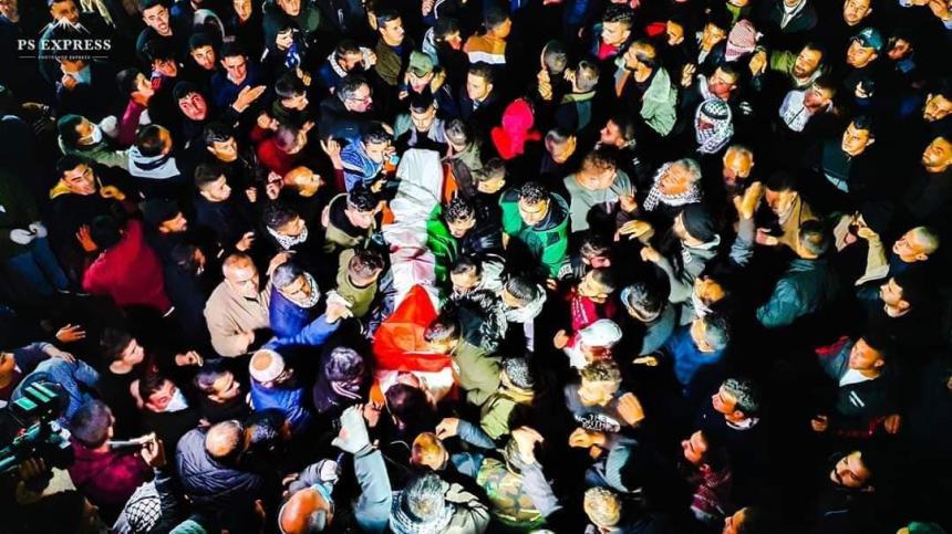 نابلس : جماهير حاشدة تشيع الشهيد دويكات في بلدة بيتا!!