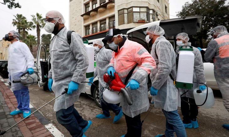 رام الله: ارتفع عدد المصابين بفيروس كورونا المستجد، اليوم الجمعة، في الأراضي الفلسطينية إلى 193 حالة، بحسب ما أعلن رئيس الوزراء الفلسطيني محمد اشتية.وقال اشتية في مؤتمر صحافي في مدينة رام الله، إنه تم تسجيل 22 إصابة جديدة لعمال فلسطينيين عائدين من إسرائيل إلى الضفة الغربية.وأضاف أن الأسبوعين المقبلين سيكونان الأصعب من ناحية السيطرة على انتشار الفيروس بسبب عودة نحو 45 ألف عامل من أماكن عملهم في إسرائيل والمستوطنات إلى منازلهم.وأعلن أنه استنادا إلى المرسوم الرئاسي بتمديد العمل بحالة الطوارئ لمدة 30 يوما، سيتم استمرار إغلاق كافة المرافق التعليمة من جامعات ومدارس ومعاهد ورياض أطفال، وإغلاق المعابر، وإيقاف الحركة بين المحافظات والمدن والبلدات والقرى والمخيمات.وكان الرئيس الفلسطيني محمود عباس أصدر الليلة الماضية مرسوما بتمديد حالة الطوارئ إلى شهر ثاني لمواجهة خطر تفشي فيروس كورونا.ودعا المرسوم الجهات المختصة إلى الاستمرار باتخاذ جميع الإجراءات اللازمة لمجابهة المخاطر الناتجة عن تفشي الفيروس، وحماية الصحة العامة وتحقيق الأمن والاستقرار.!!
