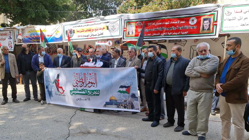 دعا متحدثون في قطاع غزة، اليوم السبت، إلى ضرورة العمل على محاكمة قادة الاحتلال أمام محكمة الجنايات الدولية لارتكابهم جرائم بحق الشعب الفلسطيني خلفت مئات الآلاف من الجرحى منهم مبتوري الأطراف.جاء ذلك خلال وقفة للفصائل بمناسبة اليوم الوطني للجريح الفلسطيني الذي يصادف الثالث عشر من مارس/ آذار من كل شهر، نظمت أمام مقر مؤسسة الشهداء والجرحى التابعة لمنظمة التحرير غرب مدينة غزة.وأكد إسماعيل رضوان القيادي في حماس، على ضرورة تدويل قضية الجرحى، ولأن يكون يوم الجريح الفلسطيني يومًا عالميًا لتكريمهم ووفاءً ولتضحياتهم الكبيرة على مدار عشرات السنوات.وشدد على ضرورة محاكمة قادة الاحتلال لارتكابهم جرائم حرب ضد الإنسانية، مشيرًا إلى أن الاحتلال تسبب بقتل وجرح مئات الآلاف من الفلسطينيين في حرب خاضها ضد الإنسان والشجر والحجر.ودعا إلى ضرورة إكرام الجرحى وتشريع قوانين تخدمهم وتضمن حقوقهم، داعيًا الرئيس محمود عباس لتوفير حياة كريمة لهم وللشهداء باعتبار ذلك حق لهم.من جانبه، دعا خالد البطش القيادي في حركة الجهاد الإسلامي، المجتمع الدولي ومحكمة الجنايات لمحاكمة قادة الاحتلال لما تسببوا به بسلب أطراف أبناء الشعب الفلسطيني وارتكابهم جرائم حرب.ودعا البطش، الجهات المسؤولة إلى ضرورة إنهاء معاناة الجرحى ومنحهم حقوقهم وحفظ كرامتهم.من ناحيته قال هاني الثوابتة القيادي في الجبهة الشعبية، إنه يجب على كل المؤسسات وجهات الاختصاص خاصة مؤسسة أسر الشهداء والجرحى إنصاف الجرحى الفلسطينيين منذ الانتفاضة وحتى مسيرات العودة ومن سبقهم إلى قوائمها، ووضع برامج واضحة تضمن حياة كريمة لهذه الشريحة الواسعة من الشعب الفلسطيني والتي يتجاوز عددها مئات الآلاف.وأضاف "هذه القضية هي الشاهد على إرهاب وإجرام الاحتلال وعلى كل الجهات القانونية أن تتداعى لاستكمال كل الملفات القانونية وتقديمها لمحكمة الجنايات الدولية".وتابع "يجب أن تنتقل هذه الملفات إلى مرحلة التطبيق الفعلي وصولاً لمحاكمة كل قادة الاحتلال على جرائمهم بحق كل أبناء شعبنا".!!